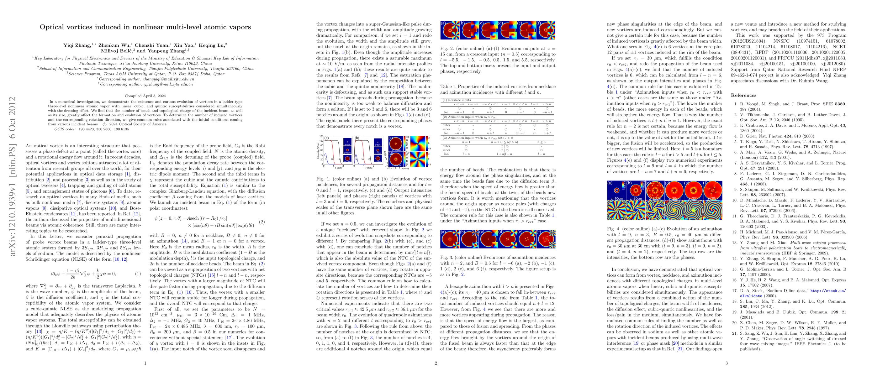 This research numerically investigates the formation and evolution of optical vortices in a three-level nonlinear atomic vapor, revealing that the number and characteristics of vortices depend on the incident beam's size, topological charge, and number of beads. The study provides rules for predicting vortex behavior based on initial beam conditions.