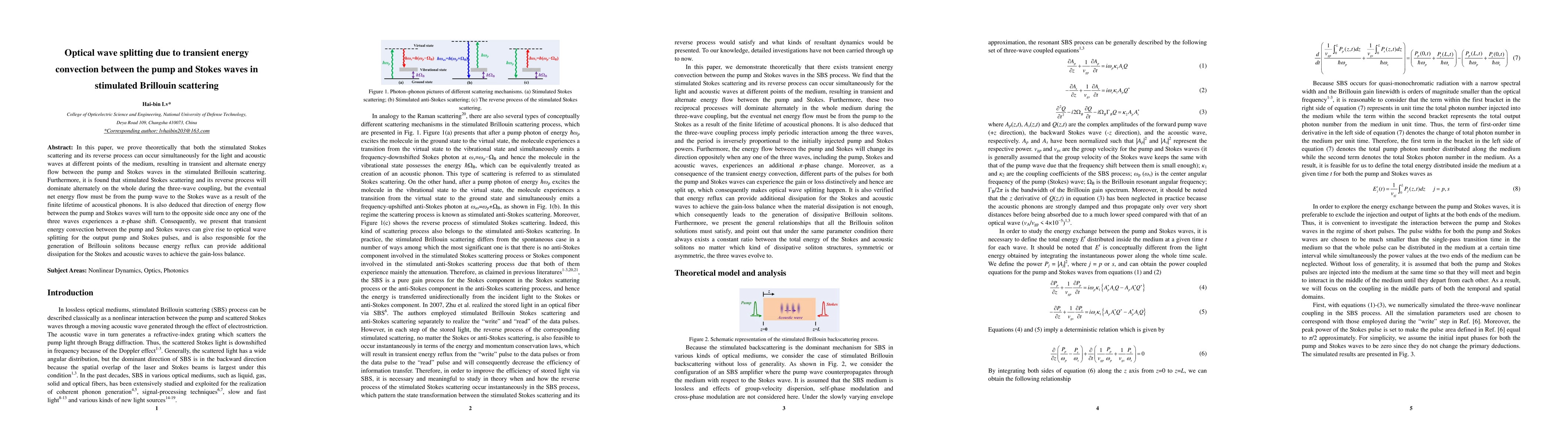 Research reveals that energy flows between pump and Stokes waves in stimulated Brillouin scattering, leading to optical wave splitting and generation of Brillouin solitons.