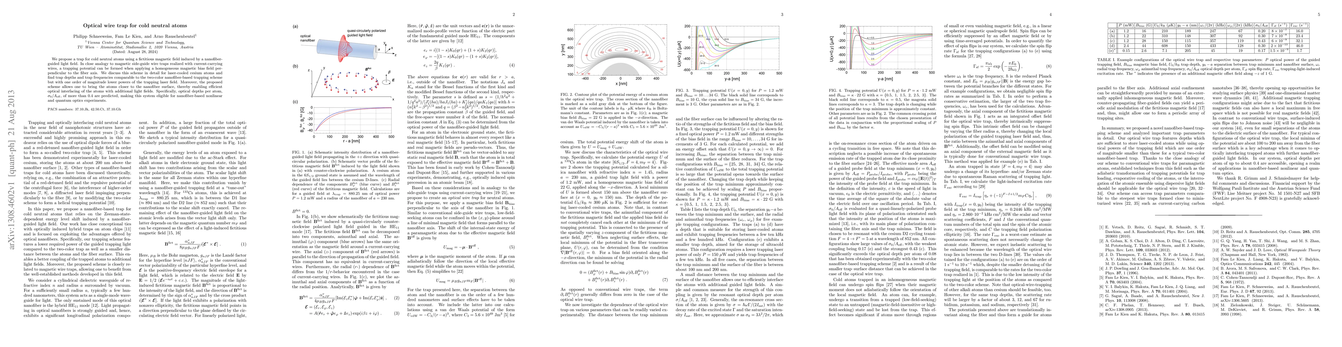 This paper proposes a novel optical wire trap for cold neutral atoms using a nanofiber-guided light field to create a fictitious magnetic field. The scheme allows for efficient trapping with lower laser power compared to existing methods, enabling closer atom-nanofiber proximity and higher optical depths, suitable for advanced nonlinear and quantum optics experiments.