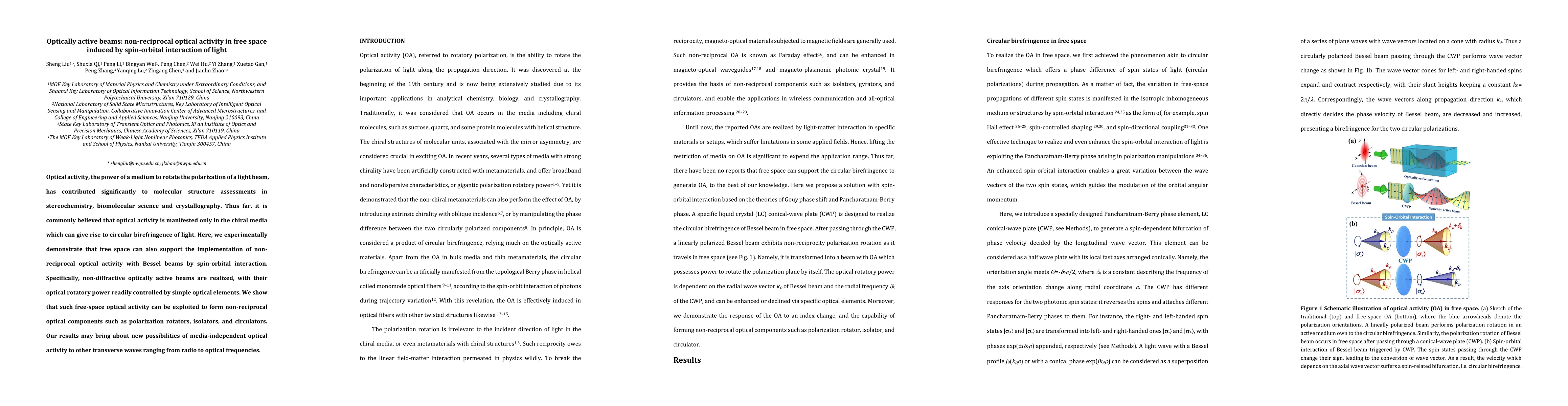 Optical activity, the power of a medium to rotate the polarization of a light beam, has contributed significantly to molecular structure assessments in stereochemistry, biomolecular science and crystallography. Thus far, it is commonly believed that optical activity is manifested only in the chiral media which can give rise to circular birefringence of light. Here, we experimentally demonstrate that free space can also support the implementation of non-reciprocal optical activity with Bessel beams by spin-orbital interaction. Specifically, non-diffractive optically active beams are realized, with their optical rotatory power readily controlled by simple optical elements. We show that such free-space optical activity can be exploited to form non-reciprocal optical components such as polarization rotators, isolators, and circulators. Our results may bring about new possibilities of media-independent optical activity to other transverse waves ranging from radio to optical frequencies.