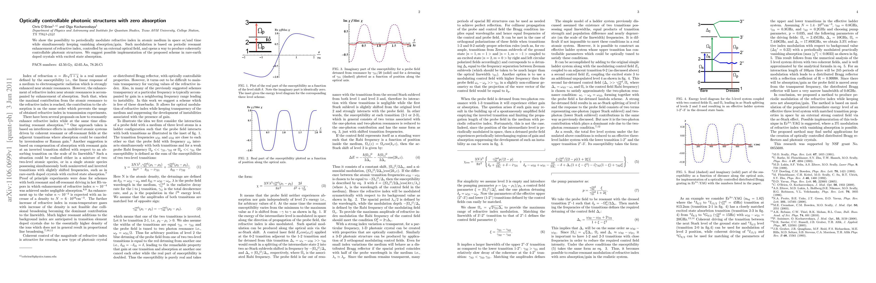 We show the possibility to periodically modulate refractive index in atomic medium in space or/and time while simultaneously keeping vanishing absorption/gain. Such modulation is based on periodic resonant enhancement of refractive index, controlled by an external optical field, and opens a way to produce coherently controllable photonic structures. We suggest possible implementation of the proposed scheme in rare-earth doped crystals with excited state absorption.