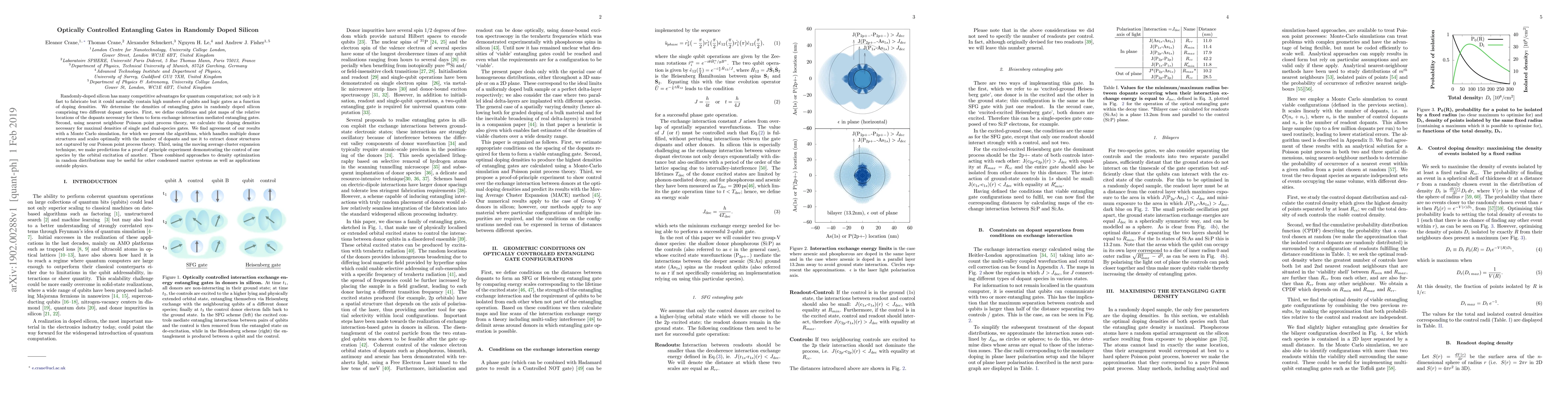 This paper explores the potential of randomly-doped silicon for quantum computation, determining optimal doping densities for entangling gates using nearest neighbour Poisson point process theory and Monte Carlo simulations. It also proposes a method for optically controlling one dopant species by exciting another, suggesting broad applicability for condensed matter systems.