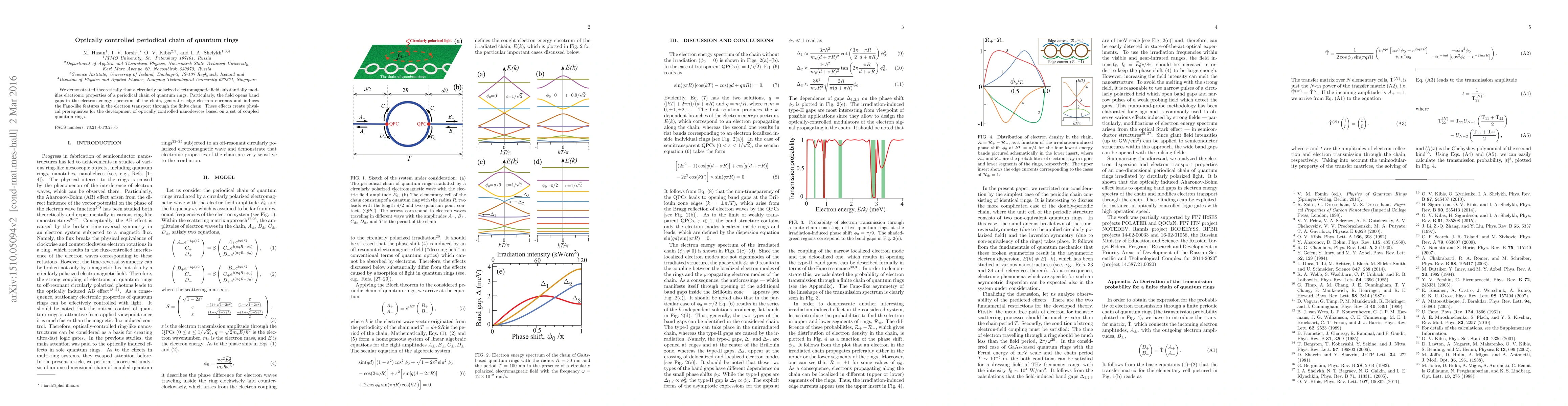 Researchers found that a circularly polarized electromagnetic field can open band gaps and induce unusual electron transport in a chain of quantum rings, enabling the development of optically controlled nanodevices.