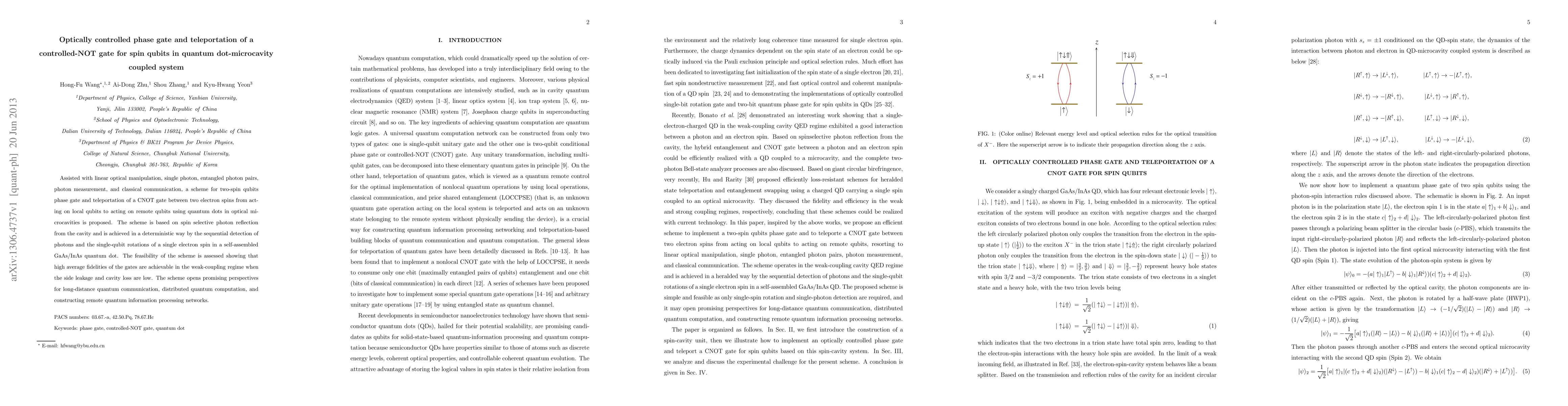 This paper proposes a method for optically controlled phase gate and teleportation of a CNOT gate for spin qubits in quantum dot-microcavity systems, utilizing single photons and entangled photon pairs. The scheme achieves high fidelity in the weak-coupling regime, promising advancements in long-distance quantum communication and quantum computing networks.
