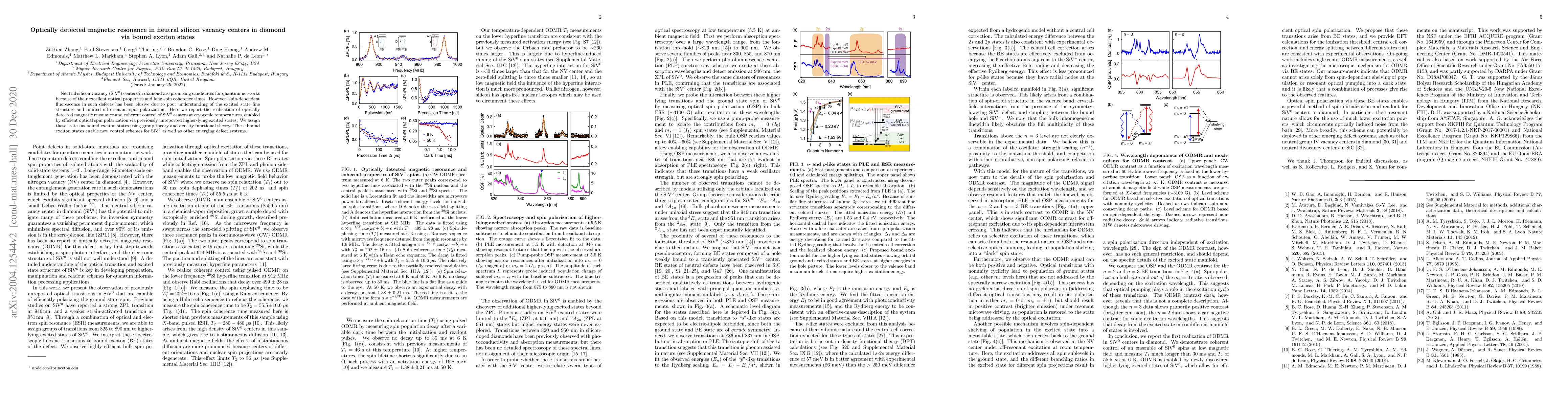 This paper reports the realization of optically detected magnetic resonance in neutral silicon vacancy centers in diamond through the use of higher-lying bound exciton states, enabling efficient optical spin polarization and coherent control at cryogenic temperatures. The study provides new insights into the excited state fine structure and potential for improved quantum network applications.