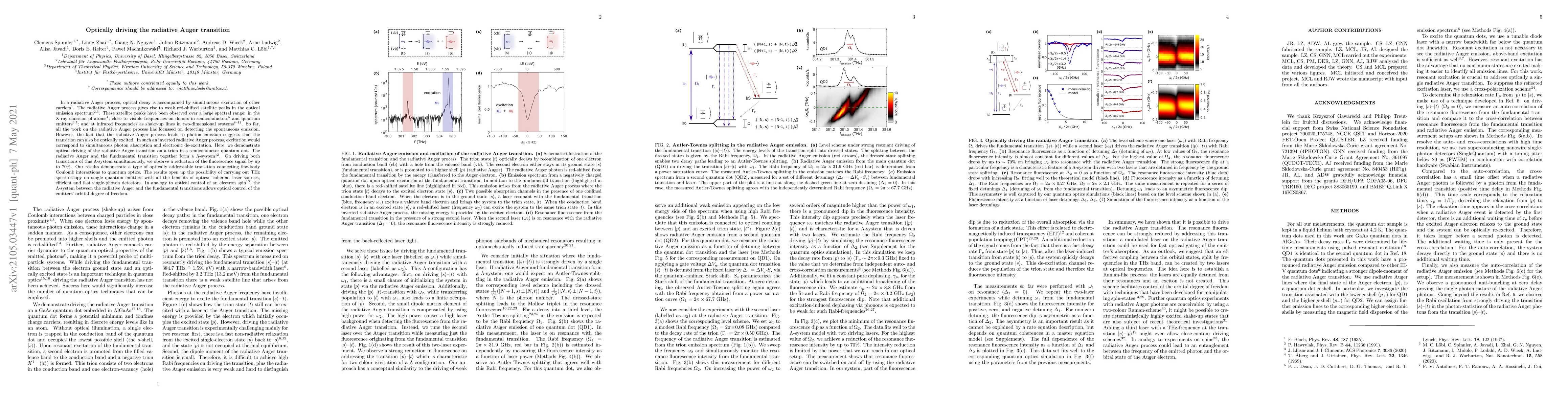 This paper demonstrates the optical excitation of a radiative Auger transition in a semiconductor quantum dot trion, showing a reduction in fluorescence signal by up to 70% when both the radiative Auger and fundamental transitions are driven simultaneously. This optically addressable transition connects few-body Coulomb interactions to quantum optics, enabling potential THz spectroscopy on single quantum emitters.