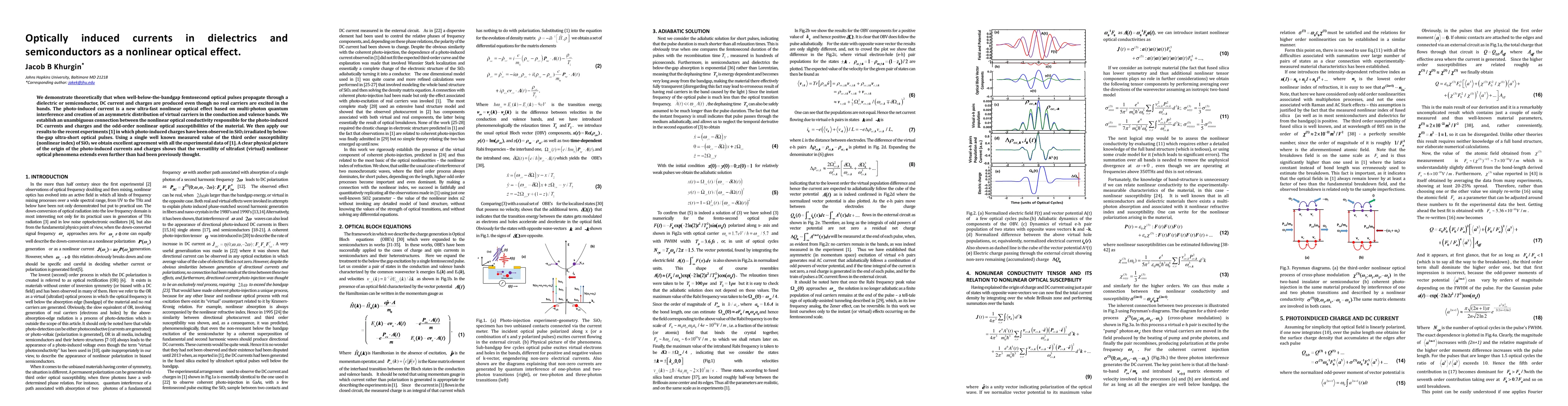 We show that recently observed DC currents produced by below-the-bandgap femtosecond pulses [1] can be explained as nonlinear optical effects based on multi-photon quantum interference and creation of an asymmetric distribution of virtual carriers in the conduction and valence bands. We establish an unambiguous connection between the nonlinear optical conductivity responsible for the observed DC currents and charges and the odd-order nonlinear optical susceptibilities of the material. Using a single well known measured value of the third order susceptibility (nonlinear index) of SiO2 we obtain excellent agreement with all the experimental data of [1] without resorting to extensive numerical modeling. A clear physical picture of the origin of the photo-induced currents and charges shows that the versatility of ultrafast (virtual) nonlinear optical phenomena extends even further than had been previously thought.