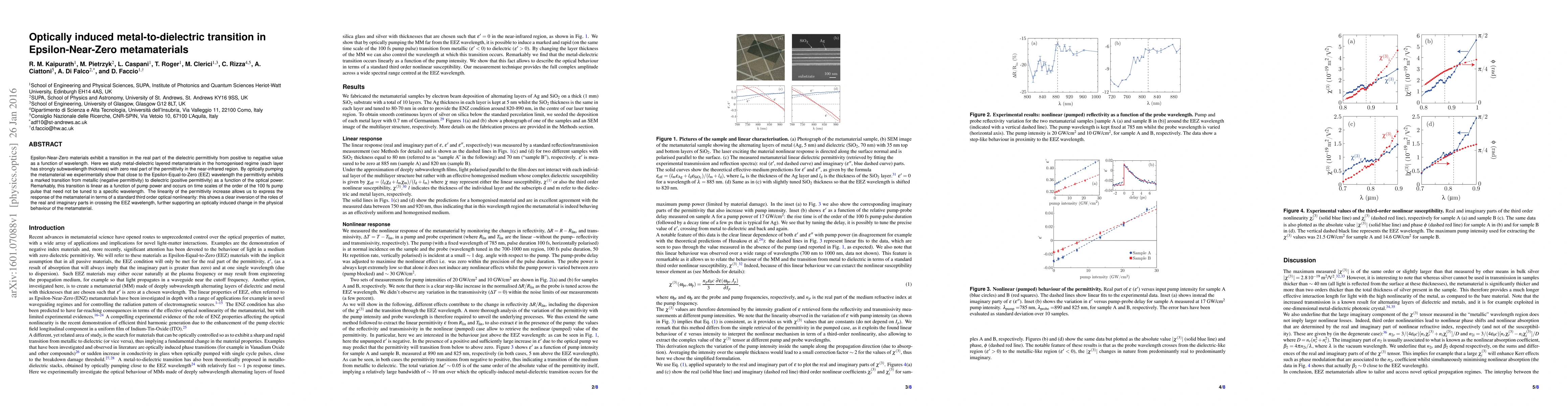 This paper investigates the optical manipulation of Epsilon-Near-Zero metamaterials, demonstrating a metal-to-dielectric transition near the Epsilon-Equal-to-Zero wavelength through optical pumping. The transition, linear with pump power, occurs rapidly and supports a change in the material's physical behavior.