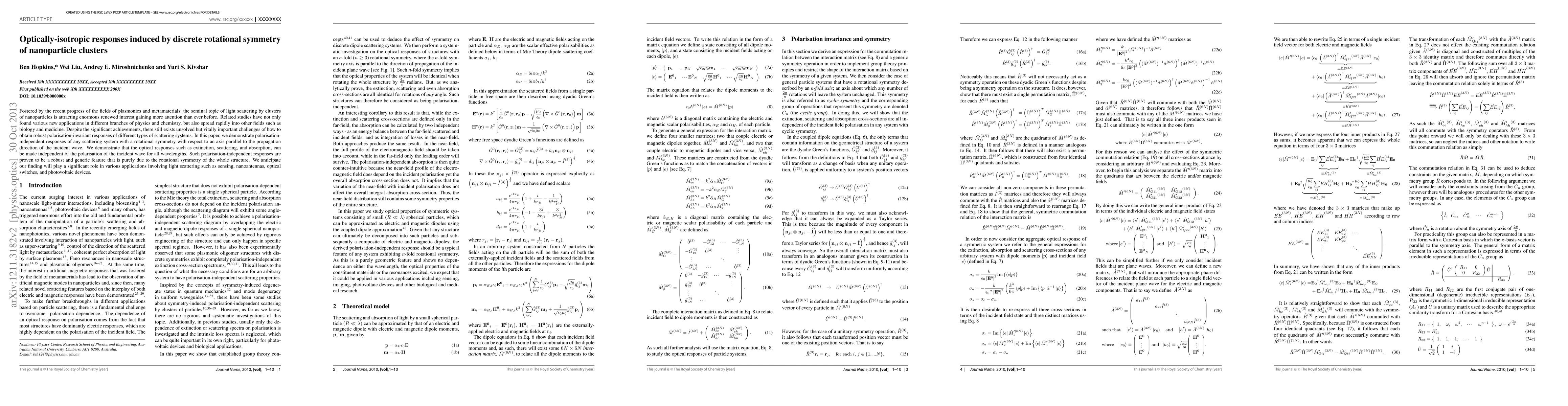 This research demonstrates that nanoparticle clusters with rotational symmetry can exhibit polarization-independent optical responses, including extinction, scattering, and absorption, across all wavelengths. This robust feature, stemming from structural symmetry, could significantly impact applications like sensing, nanoantennas, optical switches, and photovoltaic devices.