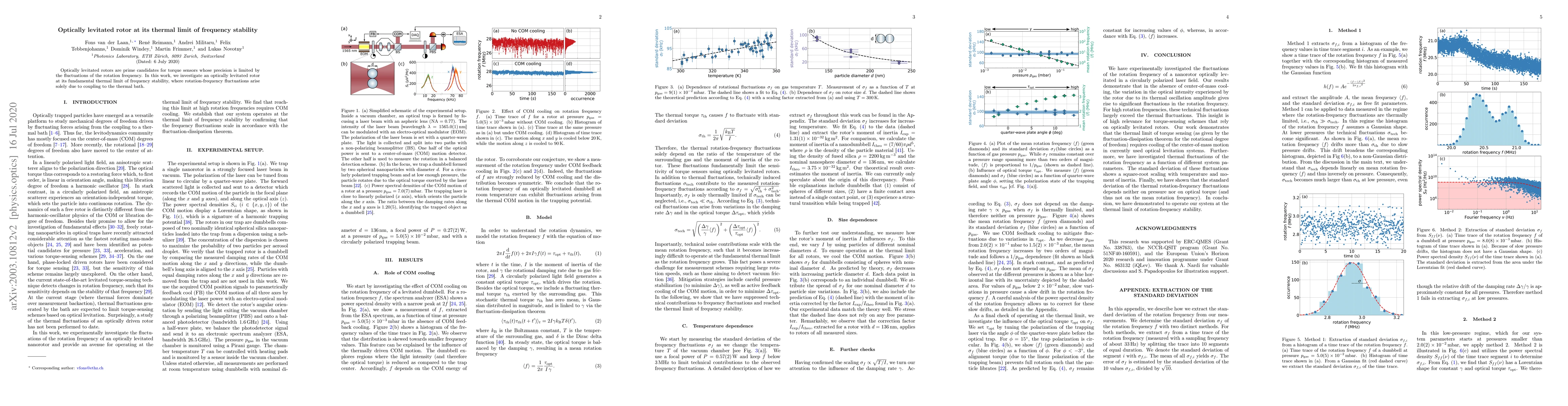 This research explores the frequency stability of optically levitated rotors at their thermal limit, focusing on precision limited by rotational frequency fluctuations due to thermal coupling, providing insights into torque sensor performance.