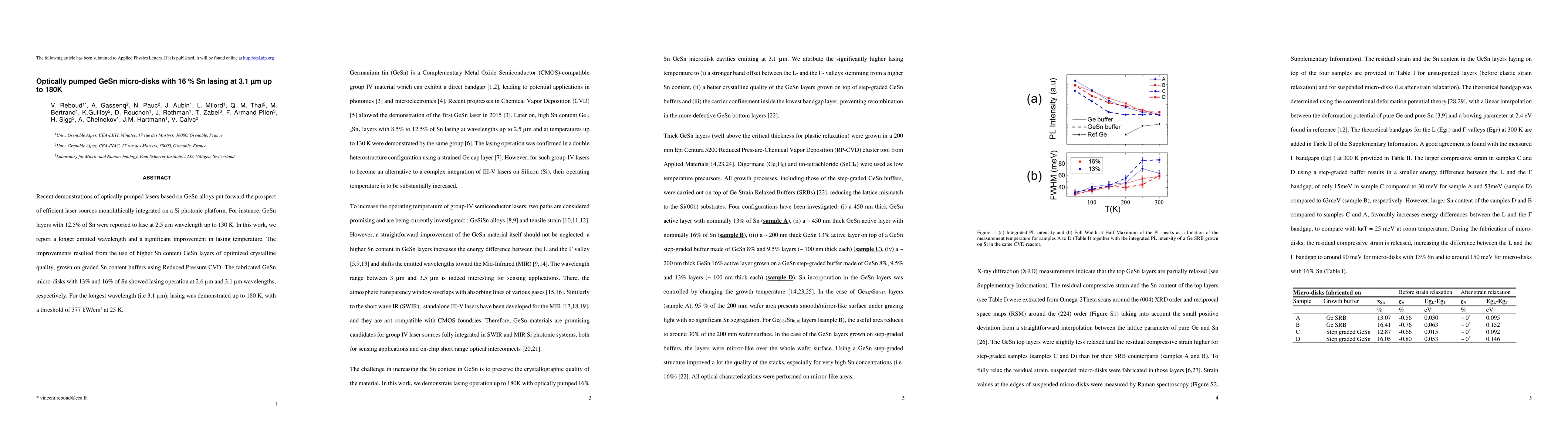 Recent demonstrations of optically pumped lasers based on GeSn alloys put forward the prospect of efficient laser sources monolithically integrated on a Si photonic platform. For instance, GeSn layers with 12.5% of Sn were reported to lase at 2.5 um wavelength up to 130 K. In this work, we report a longer emitted wavelength and a significant improvement in lasing temperature. The improvements resulted from the use of higher Sn content GeSn layers of optimized crystalline quality, grown on graded Sn content buffers using Reduced Pressure CVD. The fabricated GeSn micro-disks with 13% and 16% of Sn showed lasing operation at 2.6 um and 3.1 um wavelengths, respectively. For the longest wavelength (i.e 3.1 um), lasing was demonstrated up to 180 K, with a threshold of 377 kW/cm2 at 25 K.
