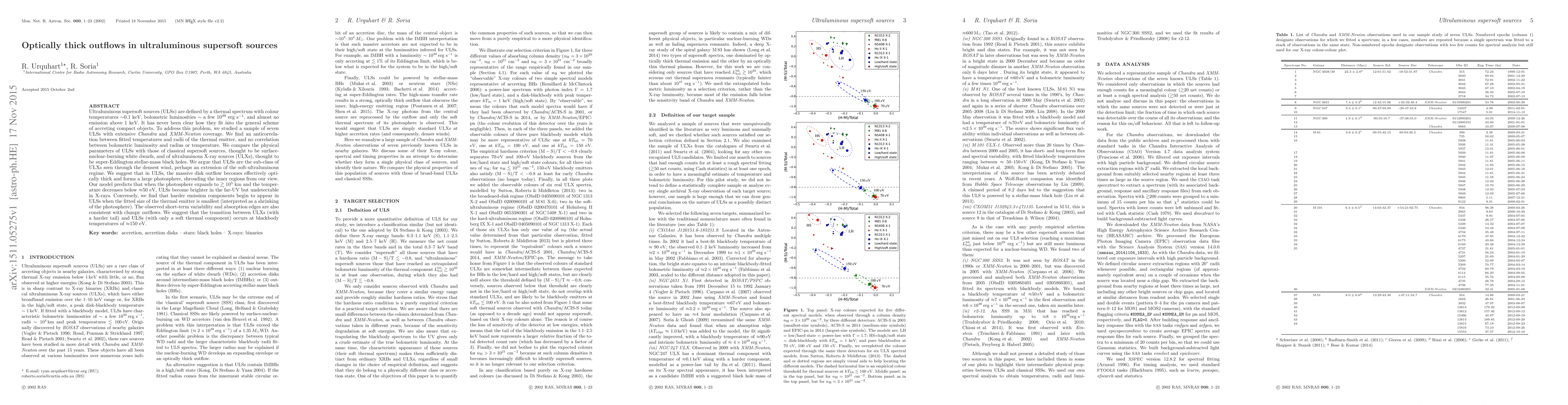Researchers studied 7 ultraluminous supersoft sources, finding an anticorrelation between thermal emitter size and temperature, and suggesting that these objects are a sub-class of ultraluminous X-ray sources with optically thick outflows.