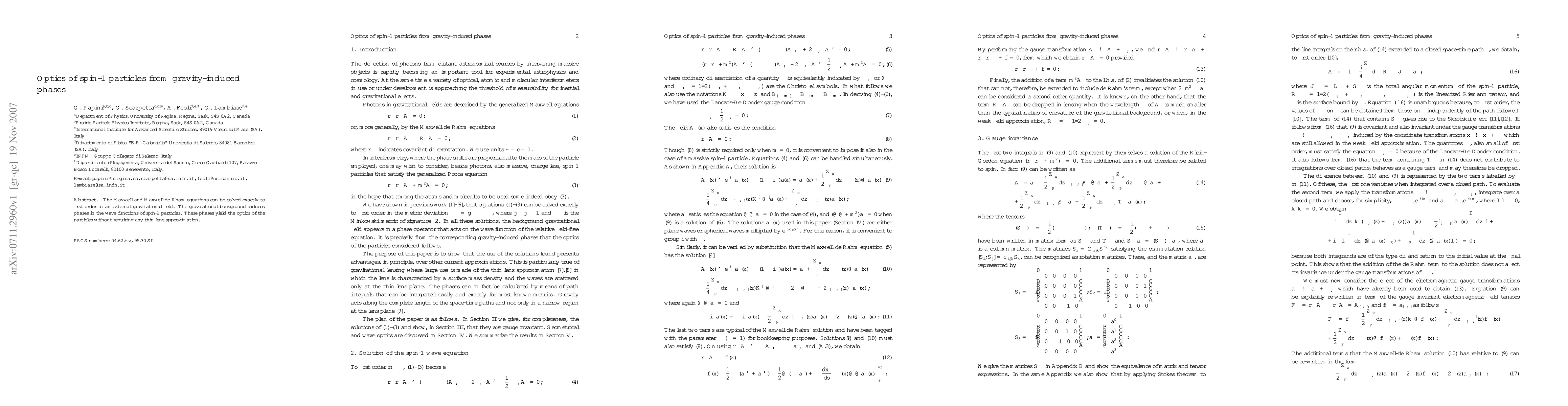 The Maxwell and Maxwell-de Rham equations can be solved exactly to first order in an external gravitational field. The gravitational background induces phases in the wave functions of spin-1 particles. These phases yield the optics of the particles without requiring any thin lens approximation.