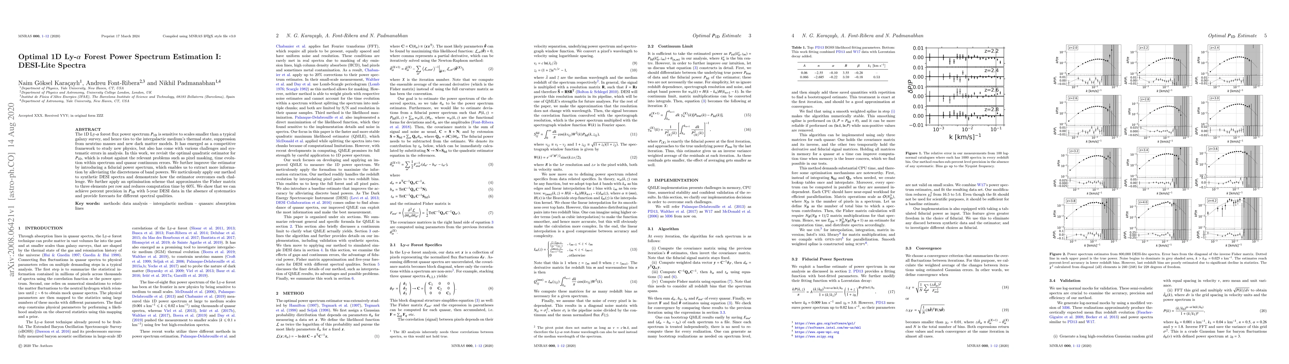 The 1D Ly-$\alpha$ forest flux power spectrum $P_{\mathrm{1D}}$ is sensitive to scales smaller than a typical galaxy survey, and hence ties to the intergalactic medium's thermal state, suppression from neutrino masses and new dark matter models. It has emerged as a competitive framework to study new physics, but also has come with various challenges and systematic errors in analysis. In this work, we revisit the optimal quadratic estimator for $P_{\mathrm{1D}}$, which is robust against the relevant problems such as pixel masking, time evolution within spectrum and quasar continuum errors. We further improve the estimator by introducing a fiducial power spectrum, which enables us to extract more information by alleviating the discreteness of band powers. We meticulously apply our method to synthetic DESI spectra and demonstrate how the estimator overcomes each challenge. We further apply an optimisation scheme that approximates the Fisher matrix to three elements per row and reduces computation time by 60%. We show that we can achieve percent precision in $P_{\mathrm{1D}}$ with 5-year DESI data in the absence of systematics and provide forecasts for different spectral qualities.
