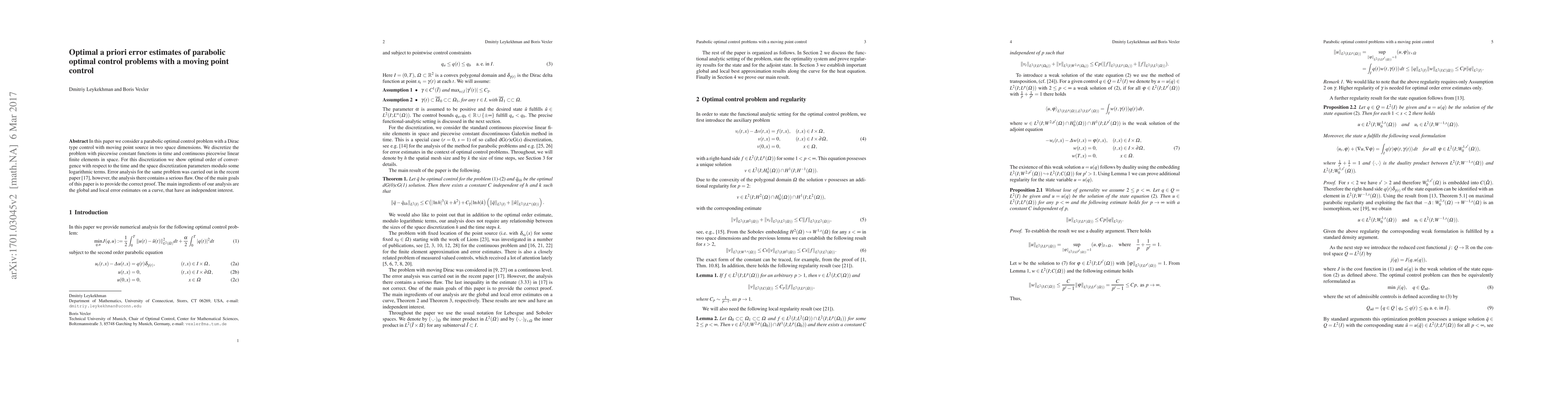 This paper investigates optimal a priori error estimates for a parabolic optimal control problem with a moving point source, correcting a flaw in previous error analysis. The authors achieve optimal convergence rates using piecewise constant time discretization and continuous piecewise linear finite elements in space, providing significant global and local error estimates along the curve.