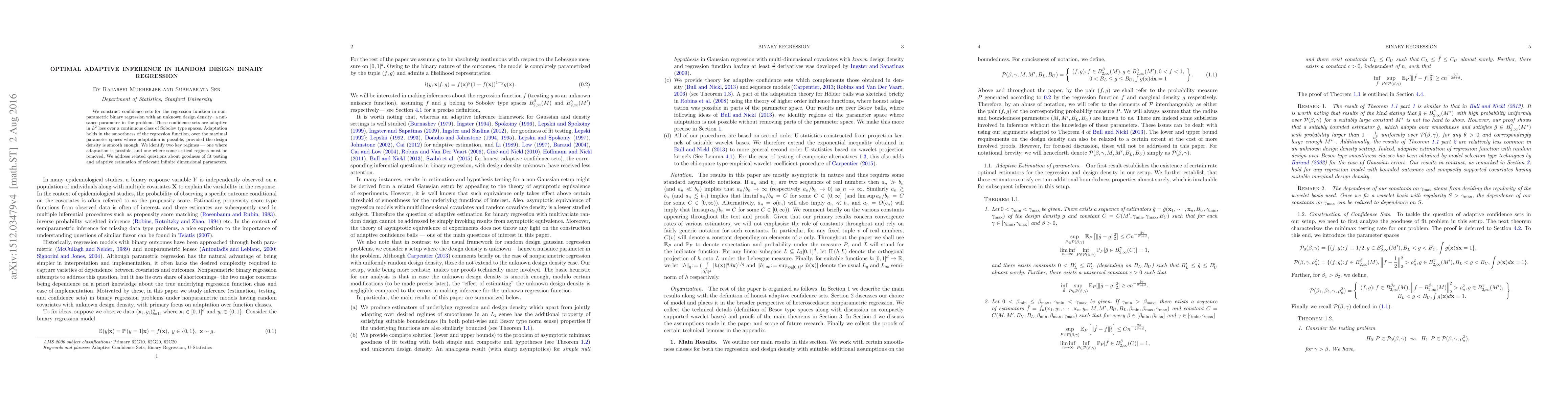 This paper constructs adaptive confidence sets for nonparametric binary regression under unknown design density, achieving $L^2$ loss adaptation over Sobolev spaces. It identifies regimes where adaptation is feasible and discusses related goodness of fit testing and parameter estimation.