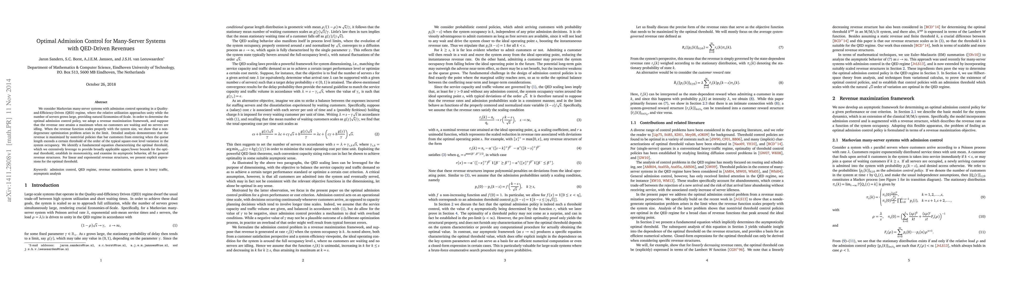 The research uses a combination of analytical and numerical methods to derive optimal control policies for queues with many servers.