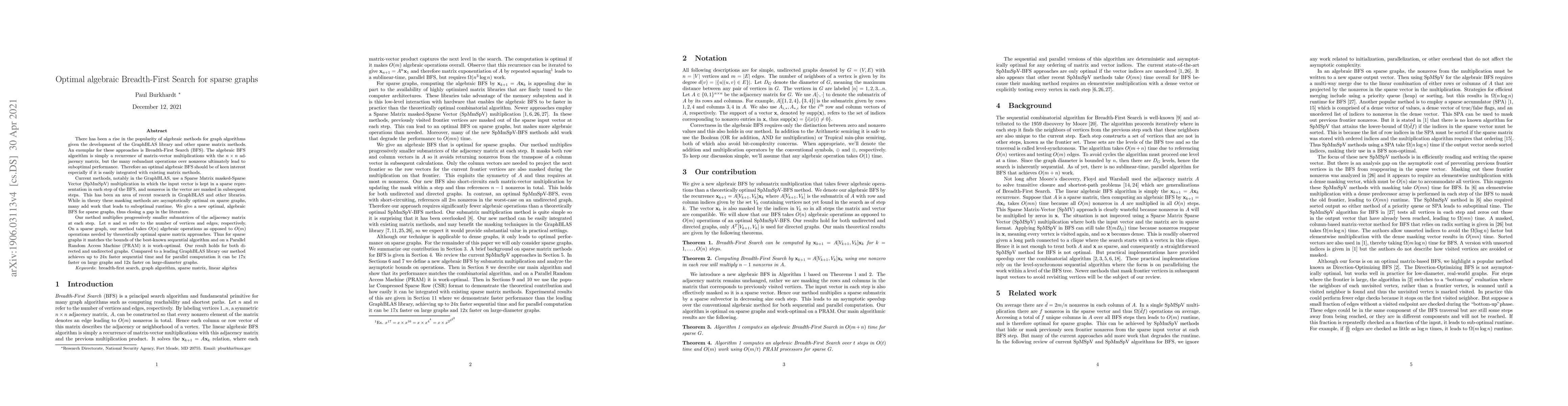 Researchers developed an optimal algebraic Breadth-First Search algorithm for sparse graphs, outperforming existing methods with up to 24x faster sequential time on some cases.