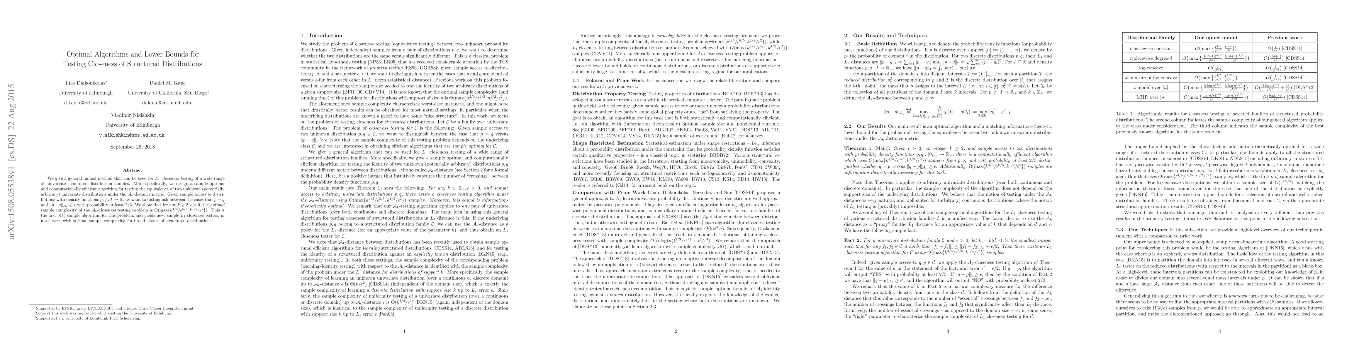 The paper introduces a unified method for $L_1$ closeness testing of structured distributions, providing optimal sample complexity bounds and a general tester, Test-Identity-Ak, for the $\mathcal{A}_k$-distance metric.