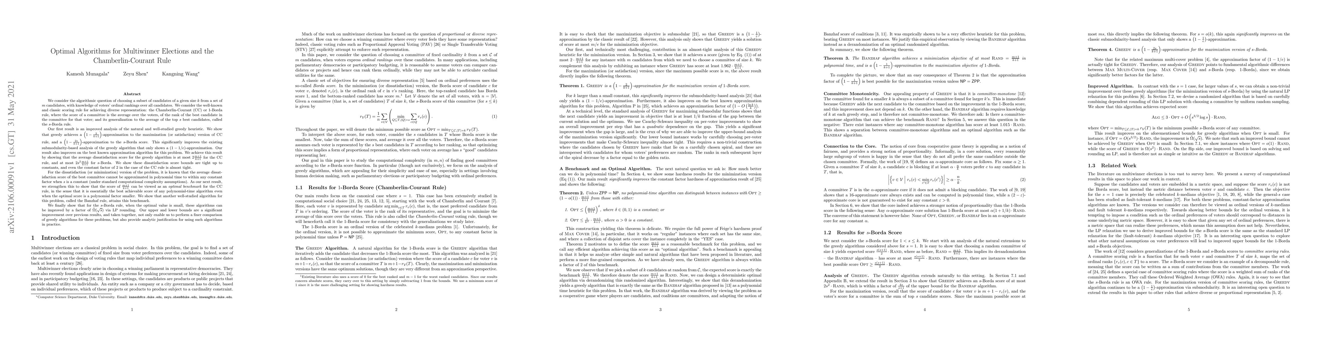 This paper studies optimal algorithms for multiwinner elections under the Chamberlin-Courant rule, improving the analysis of the greedy heuristic to achieve better approximation ratios. It also establishes optimal benchmarks for the dissatisfaction version and shows significant improvements for the $s$-Borda rule via LP rounding.