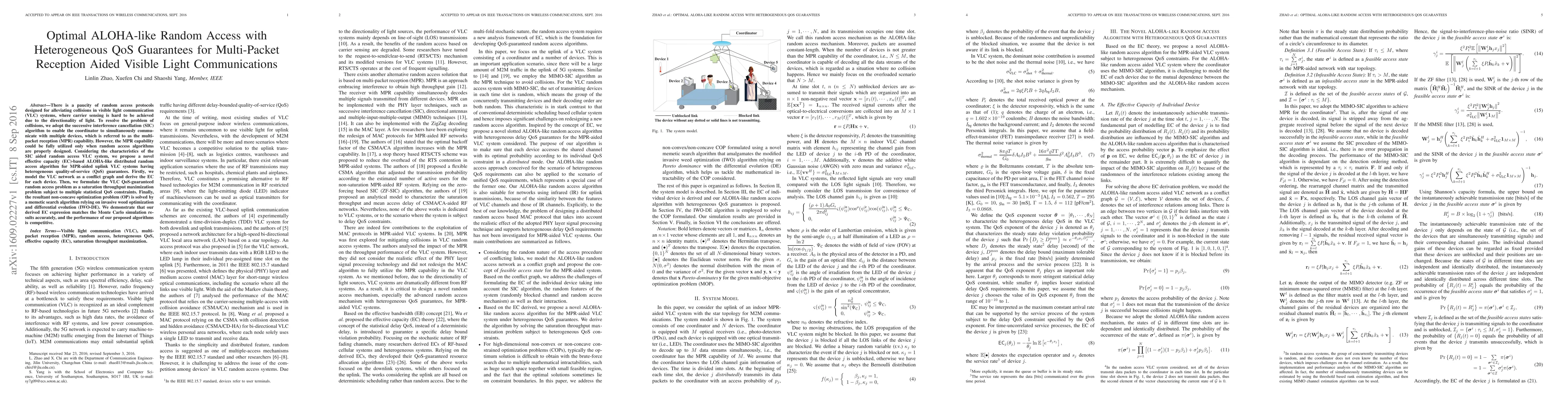 Researchers developed an optimal ALOHA-like random access algorithm for visible light communication systems with heterogeneous quality-of-service guarantees, enabling efficient multi-packet reception.