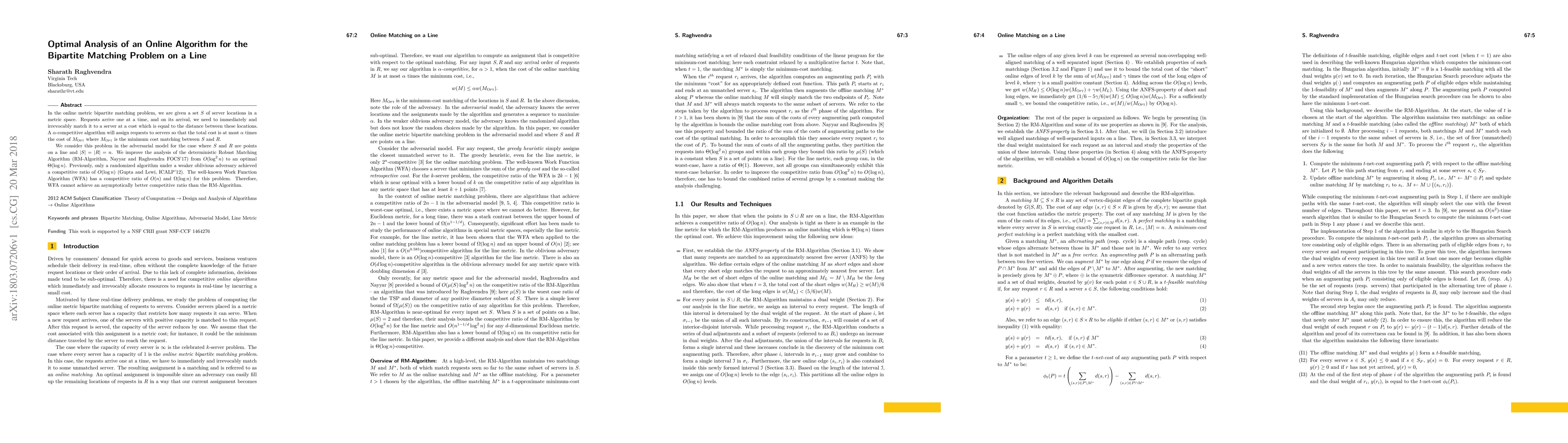 A new algorithm for the online metric bipartite matching problem on a line achieves an optimal competitive ratio of Theta(log n), improving upon previous results.