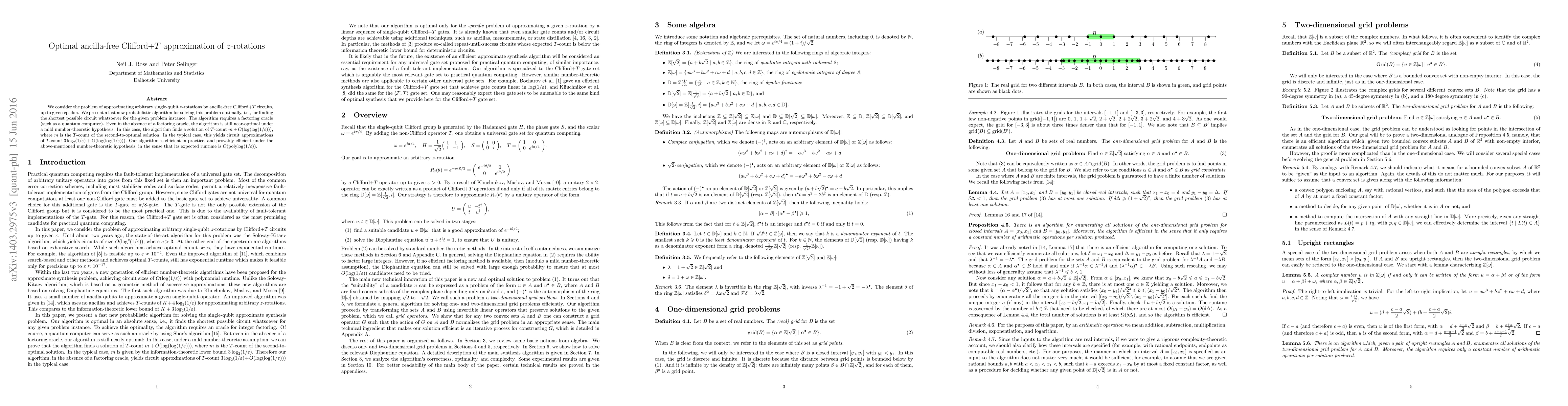 The paper presents a novel algorithm for approximating single-qubit z-rotations using Clifford+T circuits, optimized for minimal T-count.