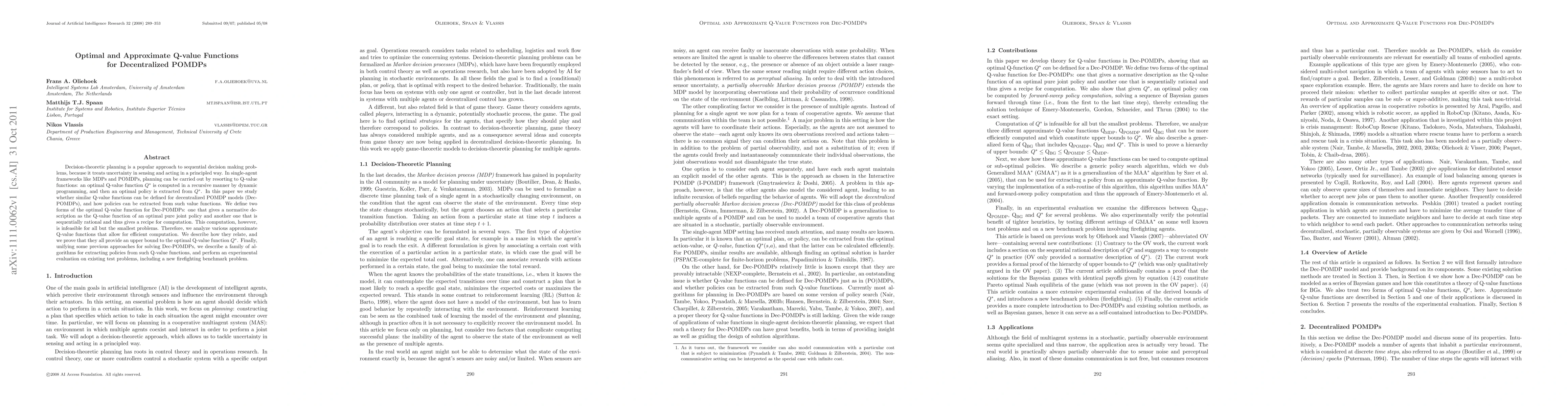 This paper explores the definition and computation of optimal and approximate Q-value functions for decentralized POMDPs (Dec-POMDPs), proposing two forms of the optimal Q-value function and analyzing efficient approximate versions. It also introduces algorithms for policy extraction and evaluates them experimentally.