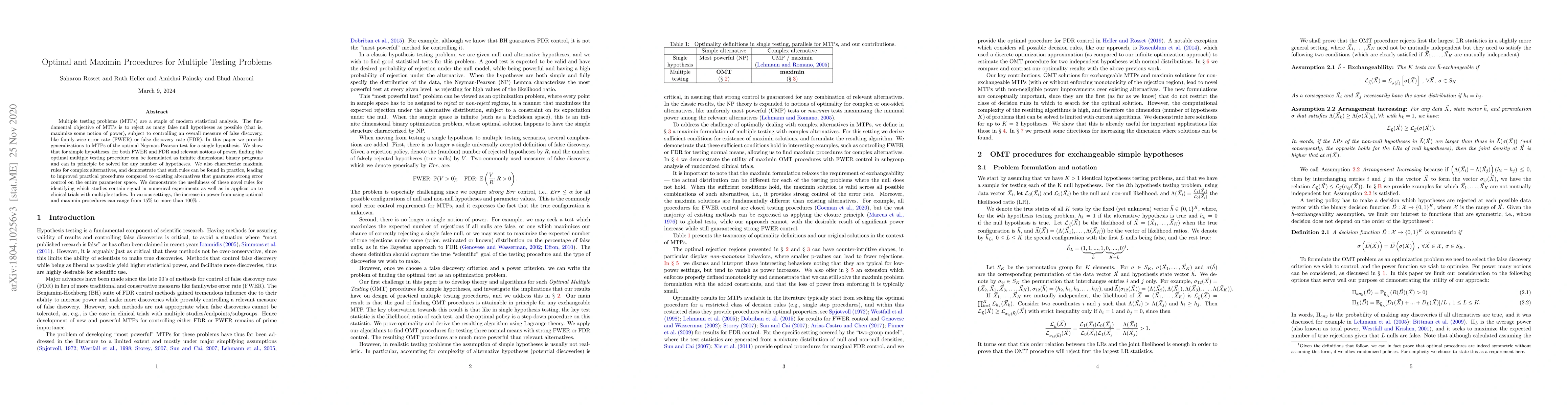 This paper develops optimal and maximin procedures for multiple testing problems, formulating them as infinite-dimensional optimization problems. It shows that the problems can be solved as infinite linear programs for exchangeable hypotheses, leading to substantial power gains over existing methods, and applies the approach to subgroup analyses in systematic reviews.