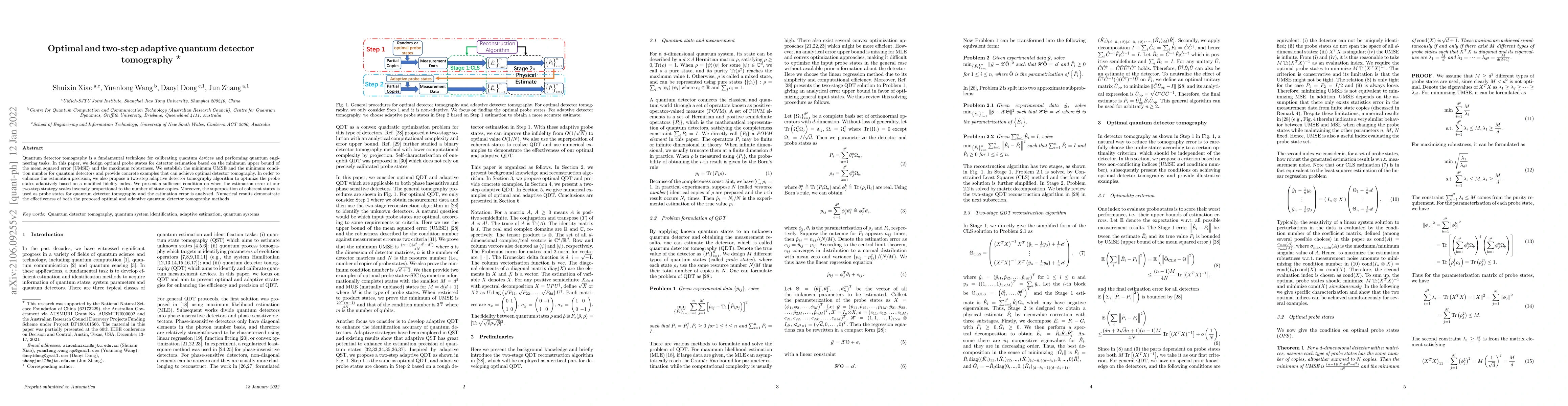 This paper designs optimal probe states for quantum detector estimation using minimum upper bound mean squared error and maximum robustness, and proposes a two-step adaptive tomography algorithm to enhance precision. Numerical results validate the effectiveness of both the optimal and adaptive methods.