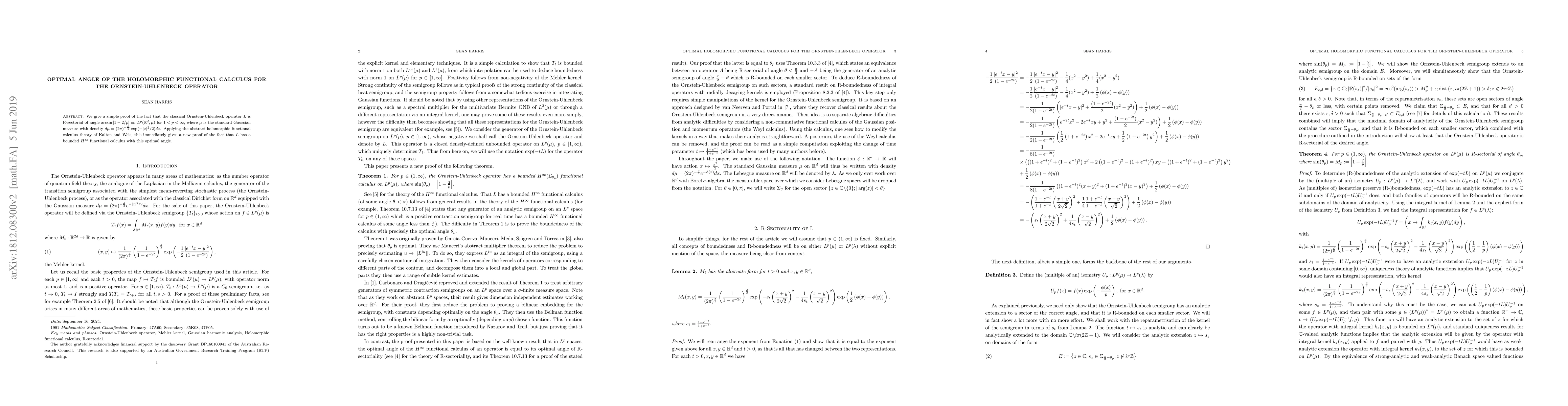Summary: This paper proves the classical Ornstein-Uhlenbeck operator is R-sectorial with an optimal angle of $\arcsin|1-2/p|$ on $L^p$ spaces, and uses Kalton and Weis's functional calculus theory to demonstrate a bounded $H^{\infty}$ functional calculus for this operator.