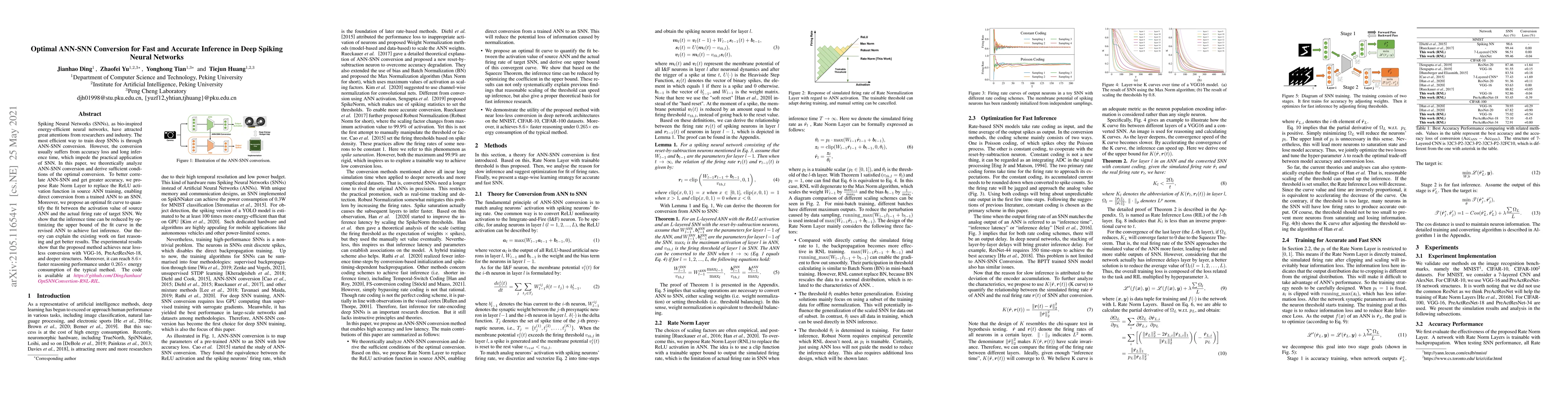 This paper proposes a method for optimal conversion from Artificial Neural Networks (ANN) to Spiking Neural Networks (SNN) to achieve fast and accurate inference. It introduces the Rate Norm Layer to replace ReLU and an optimal fit curve to minimize accuracy loss and improve inference speed, demonstrating significant improvements in both accuracy and efficiency with various deep network architectures.