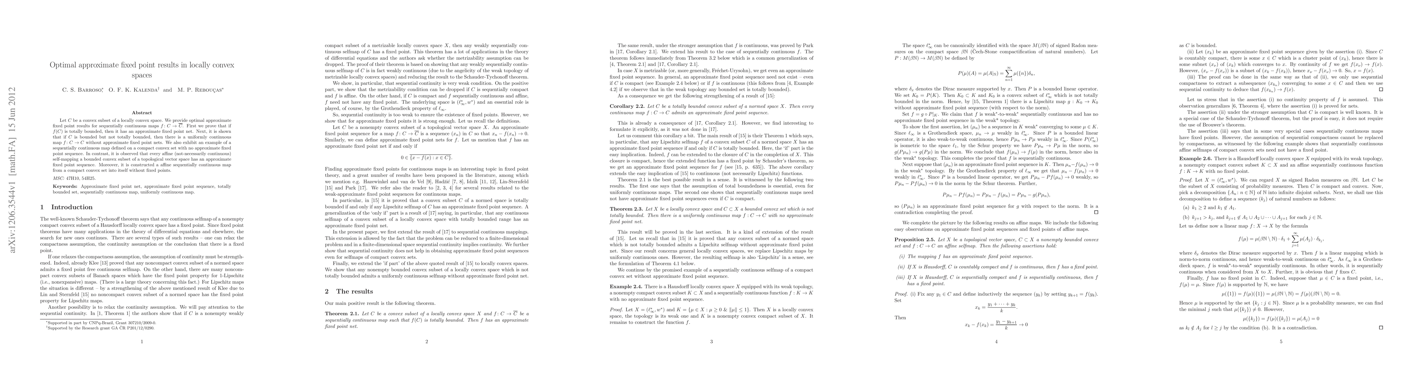 This paper explores optimal approximate fixed point results in locally convex spaces, proving that sequentially continuous maps on totally bounded convex subsets have approximate fixed point nets. It also demonstrates cases where bounded but not totally bounded subsets lack such nets, and highlights the existence of affine self-mappings with approximate fixed points on bounded convex subsets.