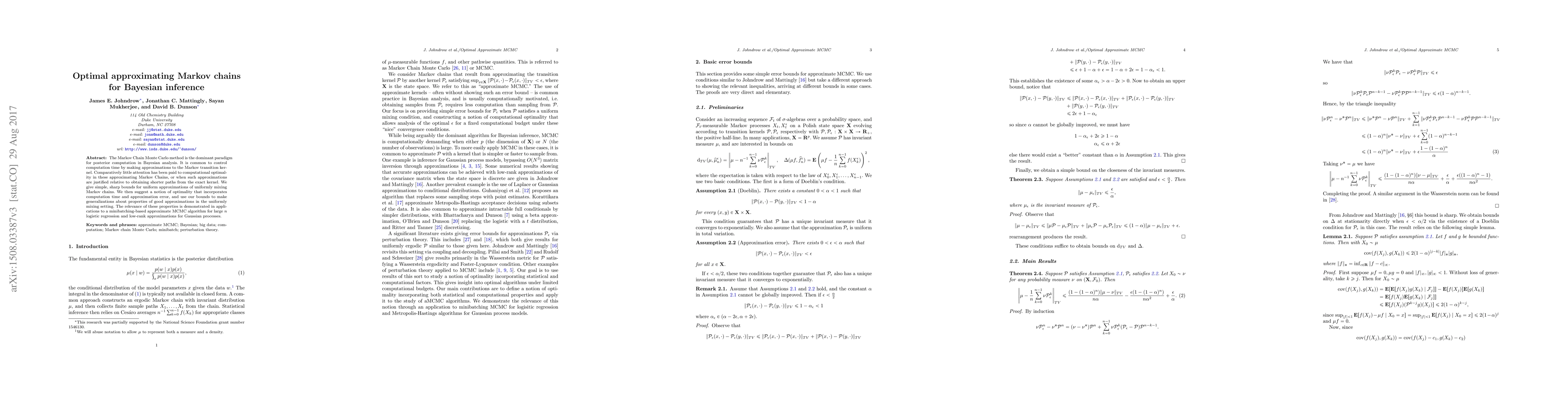 This paper investigates optimal approximations for Markov chains used in Bayesian inference, providing sharp bounds for uniform approximations and proposing a notion of optimality that balances computation time and approximation error. The findings are applied to improve minibatching-based MCMC algorithms and low-rank approximations for Gaussian processes.