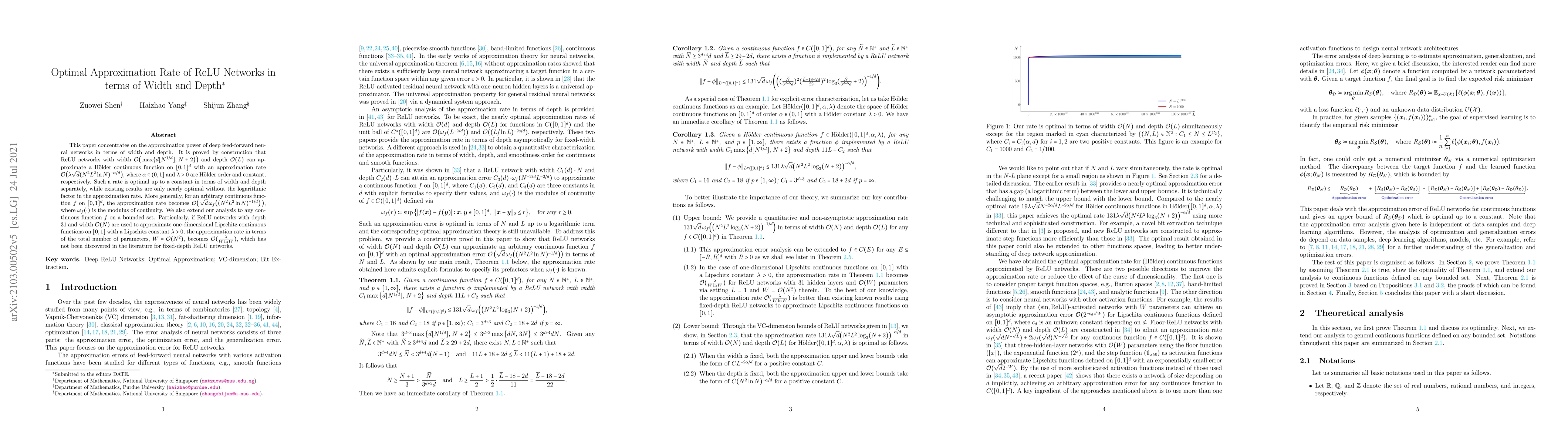 This paper concentrates on the approximation power of deep feed-forward neural networks in terms of width and depth. It is proved by construction that ReLU networks with width $\mathcal{O}\big(\max\{d\lfloor N^{1/d}\rfloor,\, N+2\}\big)$ and depth $\mathcal{O}(L)$ can approximate a H\"older continuous function on $[0,1]^d$ with an approximation rate $\mathcal{O}\big(\lambda\sqrt{d} (N^2L^2\ln N)^{-\alpha/d}\big)$, where $\alpha\in (0,1]$ and $\lambda>0$ are H\"older order and constant, respectively. Such a rate is optimal up to a constant in terms of width and depth separately, while existing results are only nearly optimal without the logarithmic factor in the approximation rate. More generally, for an arbitrary continuous function $f$ on $[0,1]^d$, the approximation rate becomes $\mathcal{O}\big(\,\sqrt{d}\,\omega_f\big( (N^2L^2\ln N)^{-1/d}\big)\,\big)$, where $\omega_f(\cdot)$ is the modulus of continuity. We also extend our analysis to any continuous function $f$ on a bounded set. Particularly, if ReLU networks with depth $31$ and width $\mathcal{O}(N)$ are used to approximate one-dimensional Lipschitz continuous functions on $[0,1]$ with a Lipschitz constant $\lambda>0$, the approximation rate in terms of the total number of parameters, $W=\mathcal{O}(N^2)$, becomes $\mathcal{O}(\tfrac{\lambda}{W\ln W})$, which has not been discovered in the literature for fixed-depth ReLU networks.