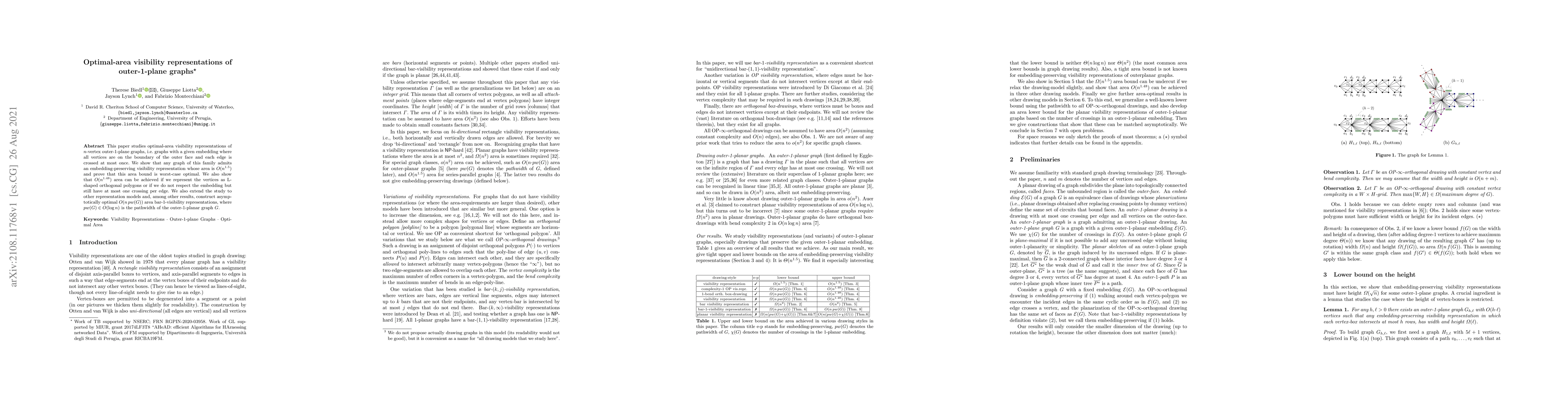 This paper investigates optimal-area visibility representations for outer-1-plane graphs, proving that $O(n^{1.5})$ area is optimal for embedding-preserving representations, while $O(n^{1.48})$ area is achievable with L-shaped polygons or relaxed edge crossings.