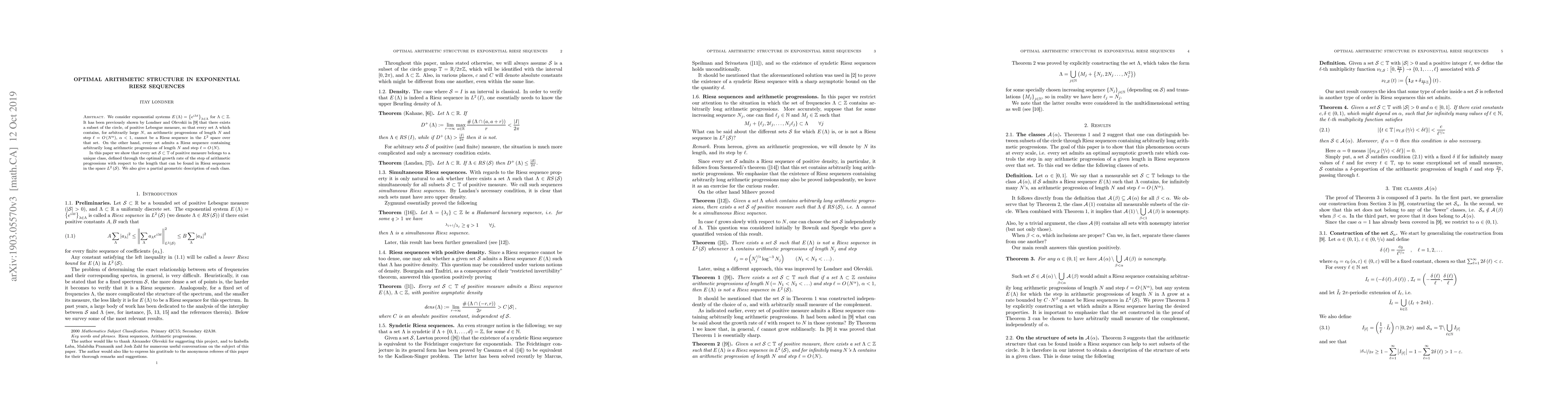 This paper investigates exponential Riesz sequences and demonstrates that sets of positive measure on the circle can be uniquely classified based on the optimal growth rate of arithmetic progressions within their Riesz sequences in $L^{2}$ space. It provides a partial geometric description of these classes.