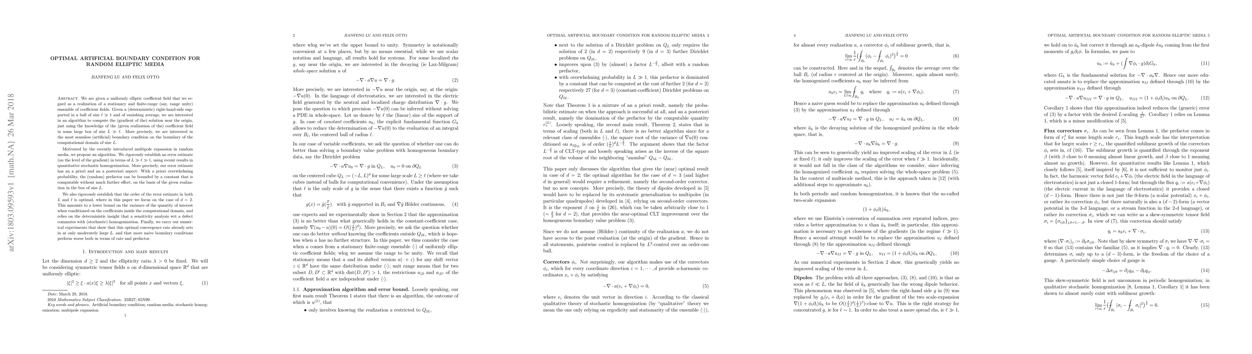 This research paper proposes an optimal artificial boundary condition for solving elliptic equations in random media, achieving a rate of convergence that sets in at moderately large computational domains, outperforming naive approaches.