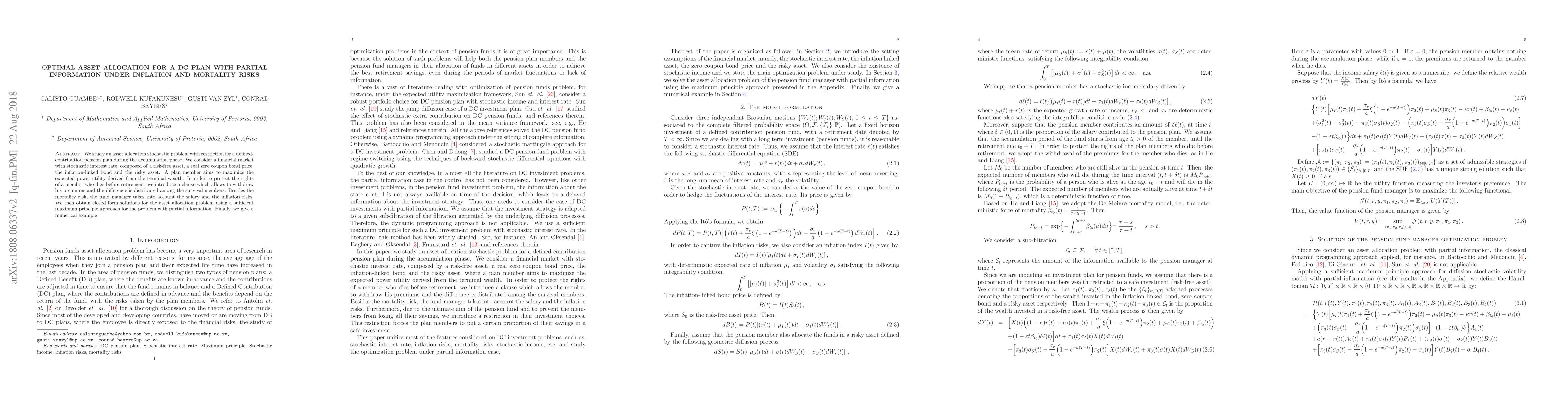 This paper investigates optimal asset allocation strategies for a defined-contribution pension plan during the accumulation phase, considering inflation and mortality risks. The study derives closed-form solutions using a sufficient maximum principle approach under partial information, and includes a numerical example to illustrate the methodology.