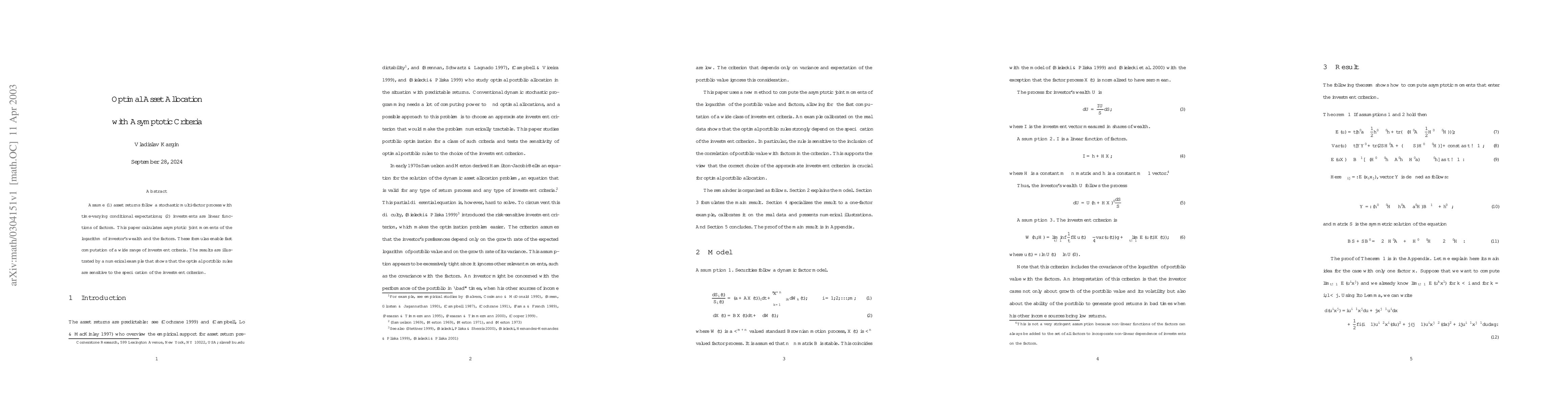 This research paper develops formulas for calculating asymptotic joint moments of investor wealth and factors to optimize asset allocation, showing that investment criteria can significantly impact optimal portfolio rules.