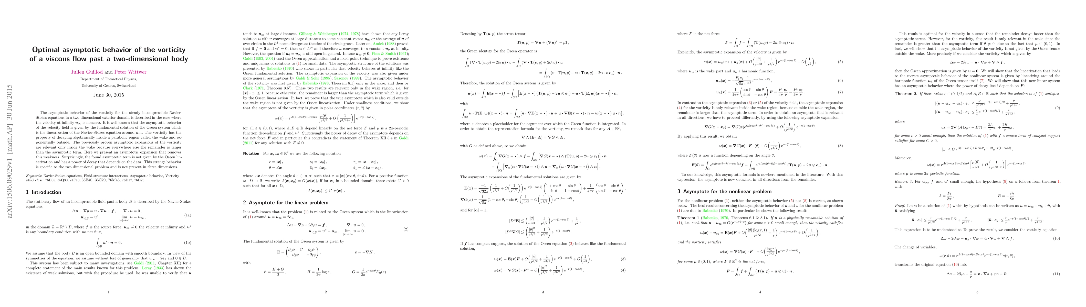 The asymptotic behavior of the vorticity for the steady incompressible Navier-Stokes equations in a two-dimensional exterior domain is described in the case where the velocity at infinity $\boldsymbol{u}_{\infty}$ is nonzero. It is well known that the asymptotic behavior of the velocity field is given by the fundamental solution of the Oseen system which is the linearization of the Navier-Stokes equation around $\boldsymbol{u}_{\infty}$. The vorticity has the property of decaying algebraically inside a parabolic region called the wake and exponentially outside. The previously proven asymptotic expansions of the vorticity are relevant only inside the wake because everywhere else the remainder is larger than the asymptotic term. Here we present an asymptotic expansion that removes this weakness. Surprisingly, the found asymptotic term is not given by the Oseen linearization and has a power of decay that depends on the data. This strange behavior is specific to the two dimensional problem and is not present in three dimensions.