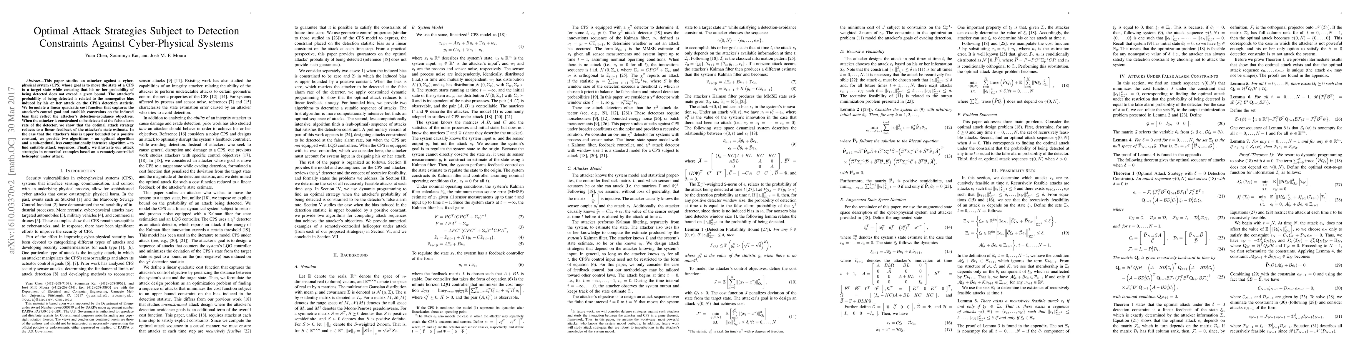 This paper investigates optimal attack strategies for a cyber-physical system (CPS) that must avoid detection while manipulating the system's state. It presents algorithms for finding attack sequences under detection constraints and demonstrates the strategies using a remotely-controlled helicopter model.