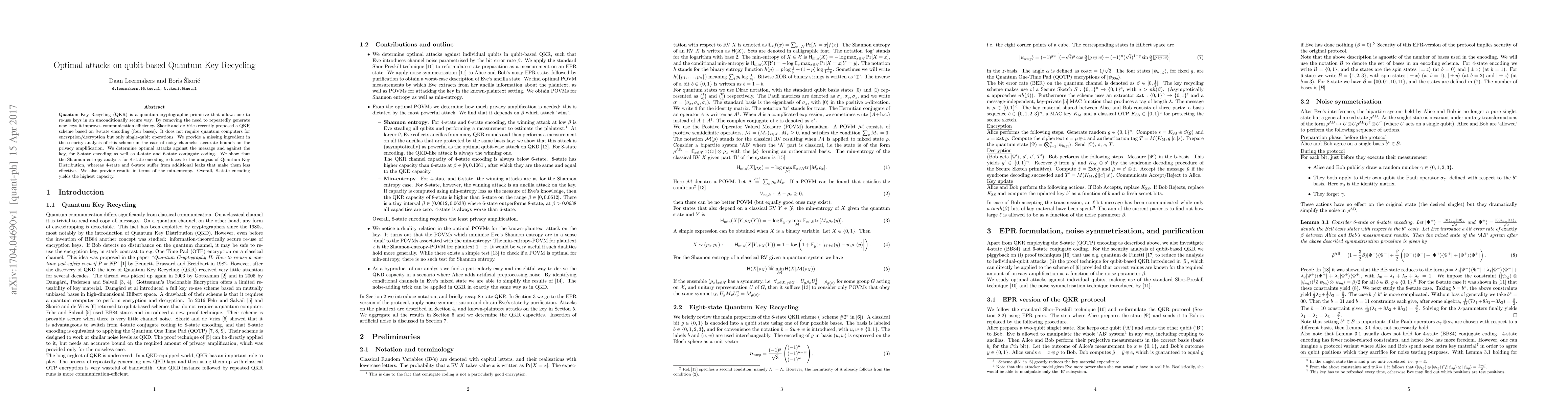 Quantum Key Recycling (QKR) is a quantum-cryptographic primitive that allows one to re-use keys in an unconditionally secure way. By removing the need to repeatedly generate new keys it improves communication efficiency. Skoric and de Vries recently proposed a QKR scheme based on 8-state encoding (four bases). It does not require quantum computers for encryption/decryption but only single-qubit operations. We provide a missing ingredient in the security analysis of this scheme in the case of noisy channels: accurate bounds on the privacy amplification. We determine optimal attacks against the message and against the key, for 8-state encoding as well as 4-state and 6-state conjugate coding. We show that the Shannon entropy analysis for 8-state encoding reduces to the analysis of Quantum Key Distribution, whereas 4-state and 6-state suffer from additional leaks that make them less effective. We also provide results in terms of the min-entropy. Overall, 8-state encoding yields the highest capacity.
