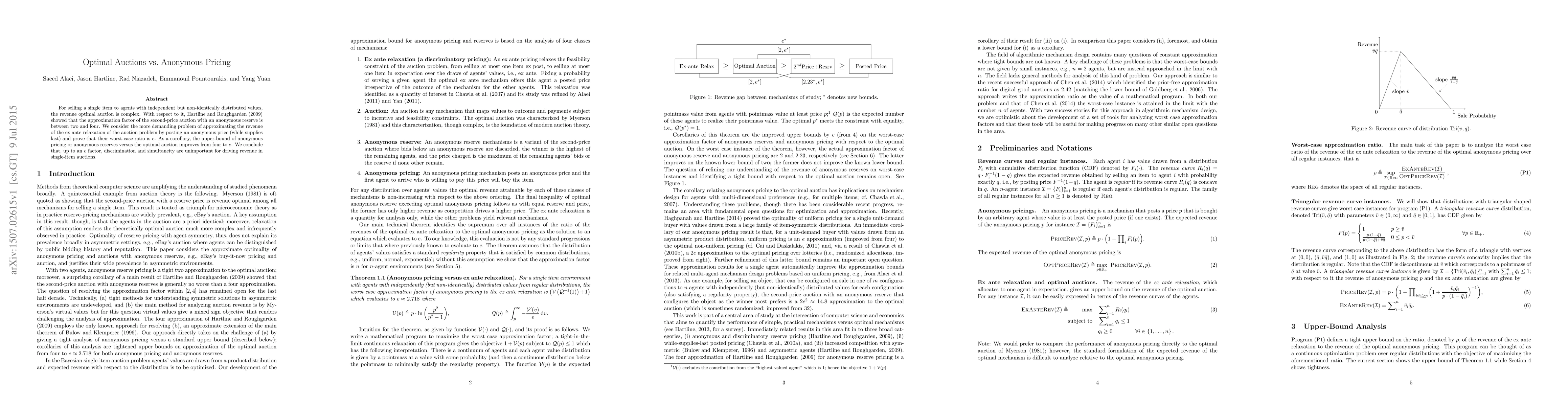 The work introduces a novel approach to bounding the revenue of anonymous pricing mechanisms and provides a more precise characterization of the gap between optimal auctions and simpler, non-discriminatory pricing methods.