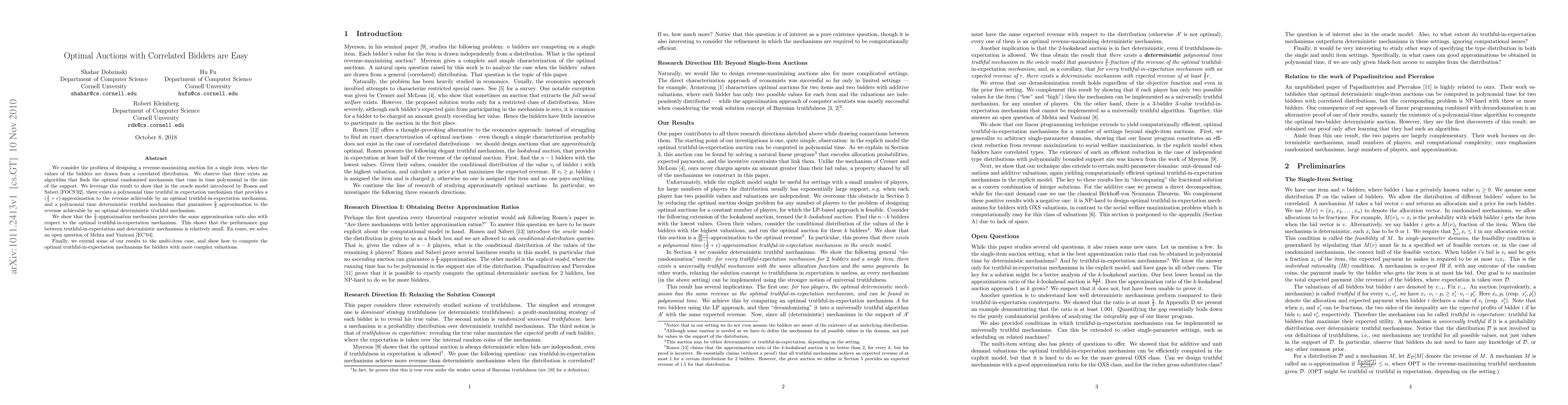 Researchers developed efficient auctions for correlated bidders, achieving revenue approximations of 3/2 + ς and 5/3, closing the gap between deterministic and truthful-in-expectation mechanisms.