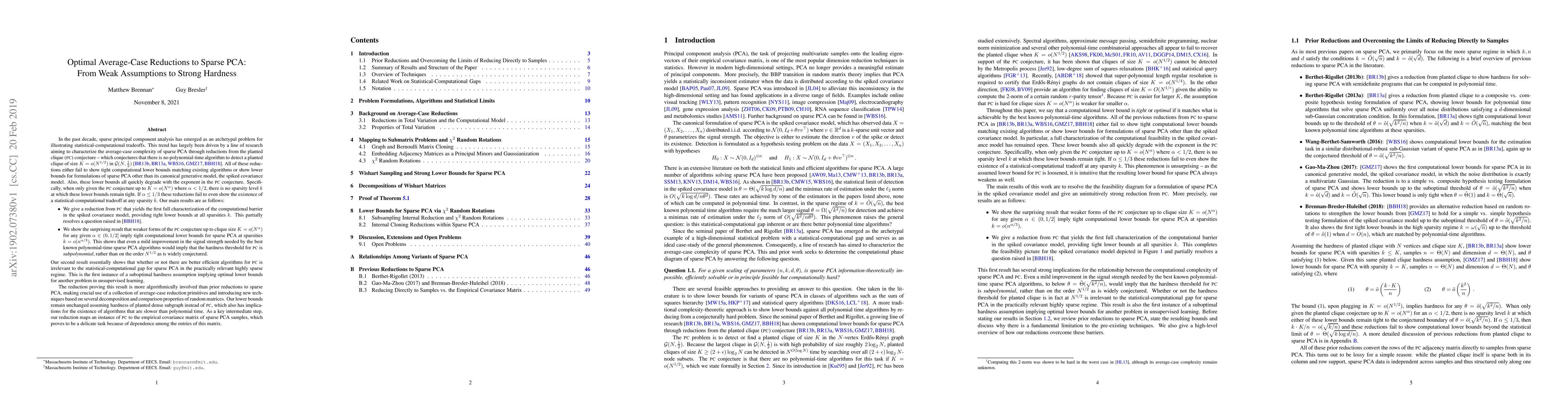 This paper presents a novel reduction from the planted clique conjecture to sparse principal component analysis (PCA), achieving tight computational lower bounds for the sparse PCA problem under the spiked covariance model. It demonstrates that even weaker forms of the conjecture imply optimal lower bounds for sparse PCA, indicating a significant statistical-computational tradeoff.
