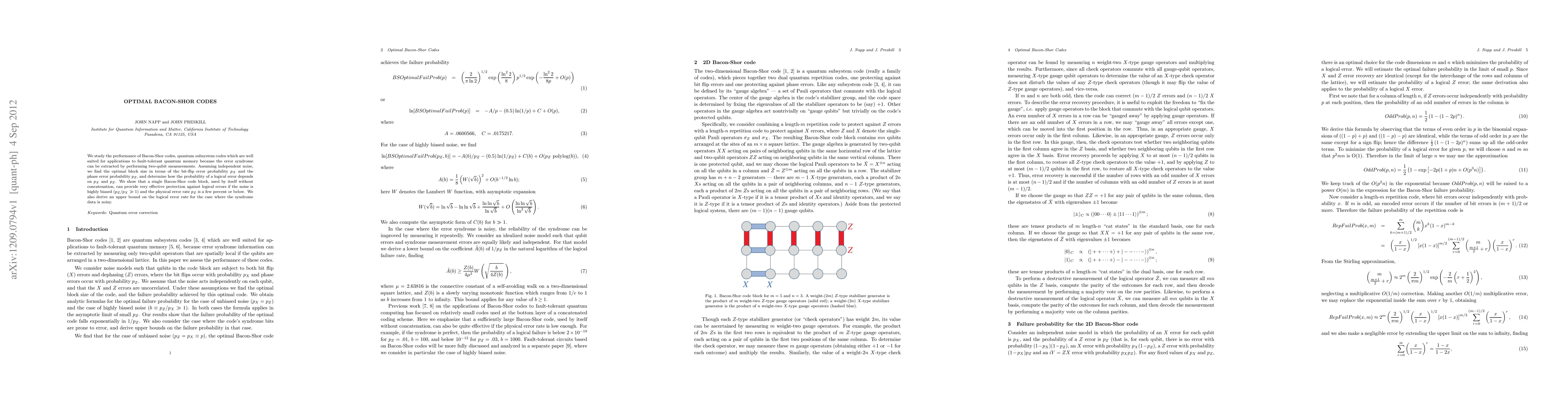 This paper investigates the optimal performance of Bacon-Shor codes for fault-tolerant quantum memory, determining the best block size for minimizing logical errors under bit-flip and phase error conditions. It finds that a single block can effectively protect against errors if phase errors dominate and are kept below a few percent.
