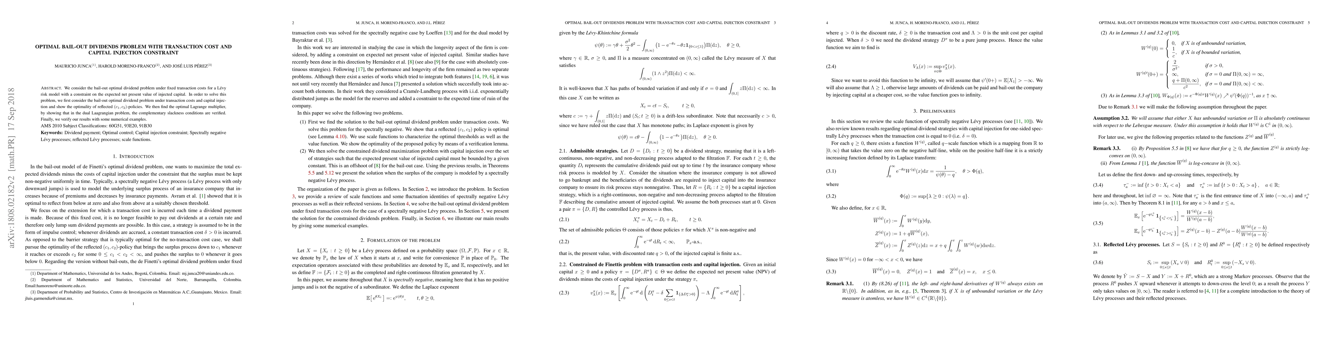 We consider the bail-out optimal dividend problem under fixed transaction costs for a L\'evy risk model. Furthermore, we consider the version with a constraint expected net present value of injected capital. To characterize the solution to the aforementioned models, we first solve the bail-out optimal dividend problem under transaction costs and capital injection and show the optimality of reflected (c1; c2)- policies. Next, we introduce the dual Lagrangian problem and show that the complementary slackness conditions are satisfied, characterizing the optimal Lagrange multiplier. Finally, we illustrate our findings with a series of numerical examples.