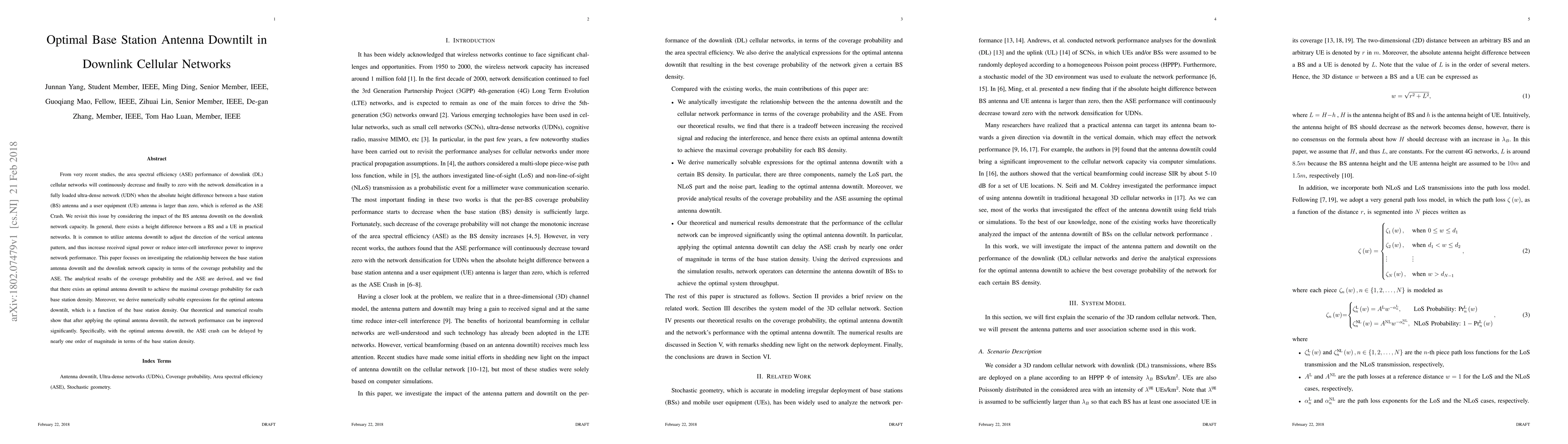 The paper derives analytical expressions for the coverage probability and area spectral efficiency (ASE) in terms of base station antenna downtilt and density, providing a theoretical foundation for optimal downtilt configurations.