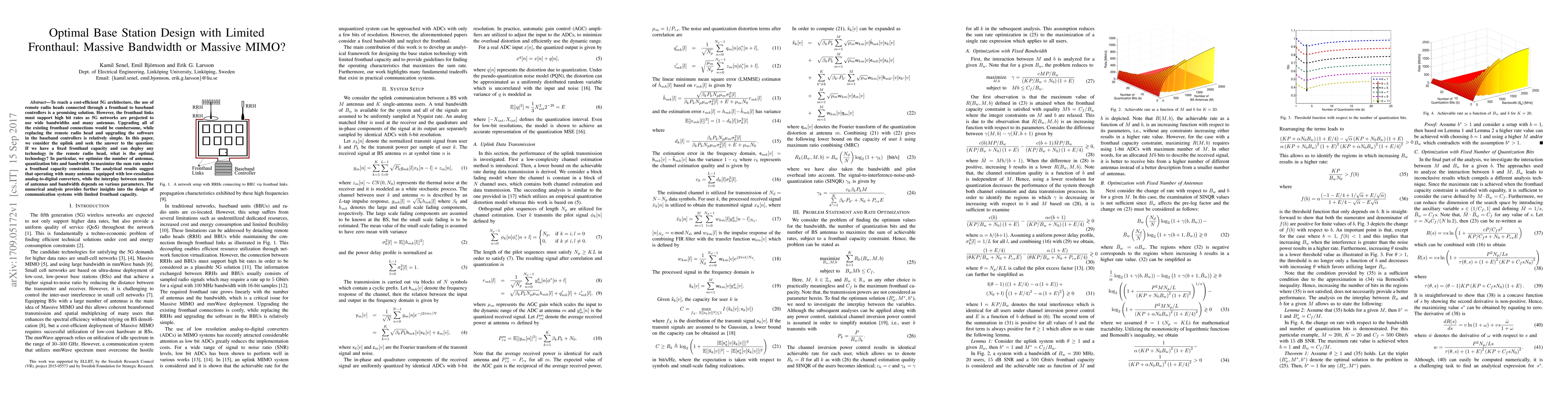 To reach a cost-efficient 5G architecture, the use of remote radio heads connected through a fronthaul to baseband controllers is a promising solution. However, the fronthaul links must support high bit rates as 5G networks are projected to use wide bandwidths and many antennas. Upgrading all of the existing fronthaul connections would be cumbersome, while replacing the remote radio head and upgrading the software in the baseband controllers is relatively simple. In this paper, we consider the uplink and seek the answer to the question: If we have a fixed fronthaul capacity and can deploy any technology in the remote radio head, what is the optimal technology? In particular, we optimize the number of antennas, quantization bits and bandwidth to maximize the sum rate under a fronthaul capacity constraint. The analytical results suggest that operating with many antennas equipped with low-resolution analog-to-digital converters, while the interplay between number of antennas and bandwidth depends on various parameters. The numerical analysis provides further insights into the design of communication systems with limited fronthaul capacity.
